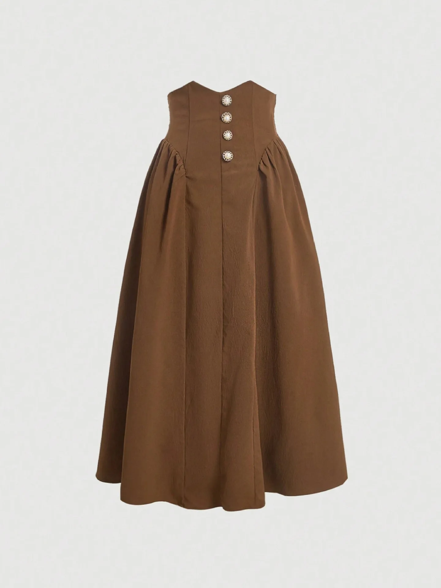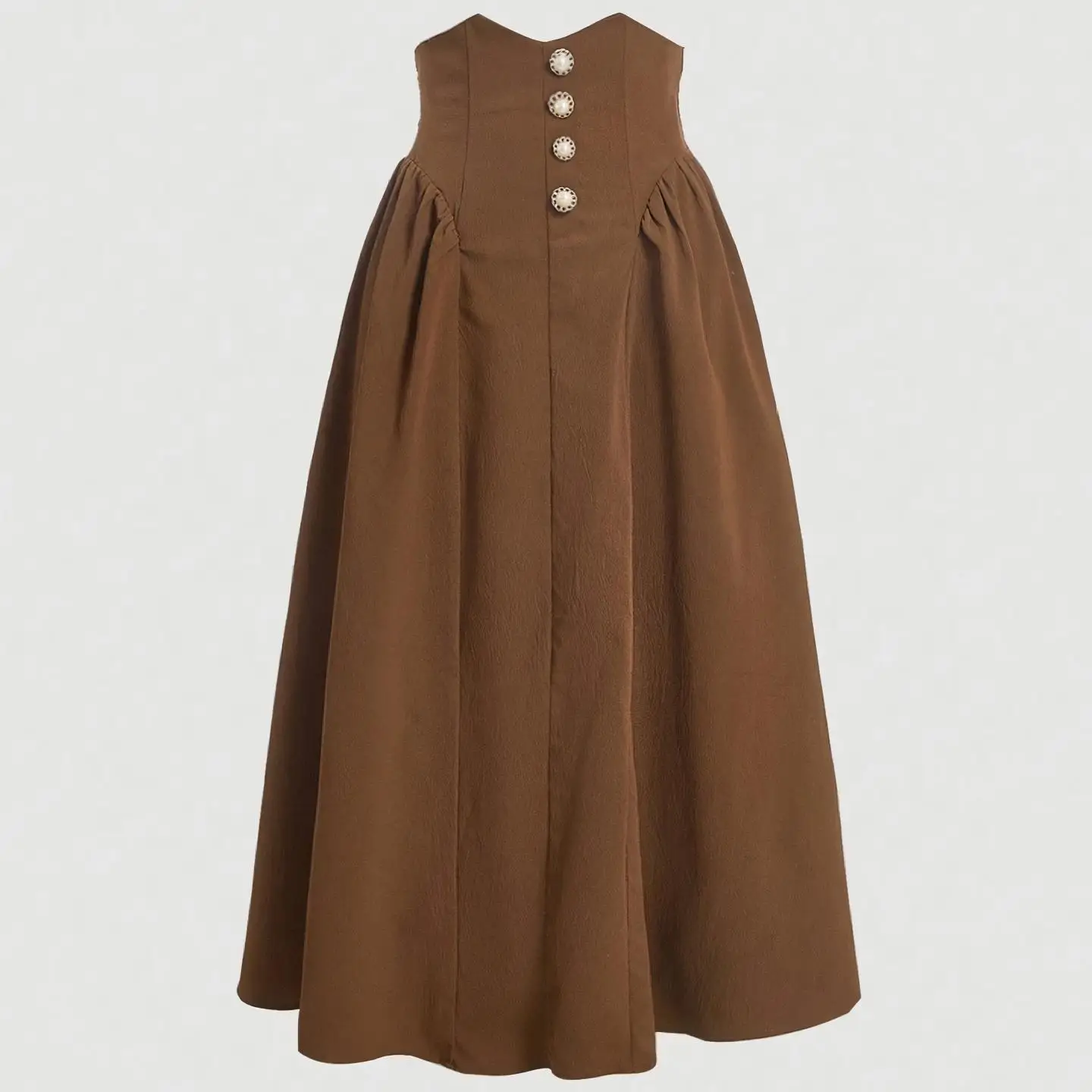 Academic Style Women's Long Large A-Line Skirt Pear Shape High Waist with Button Decoration Light Luxury Casual Look for Autumn