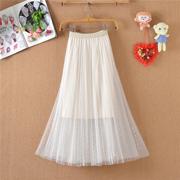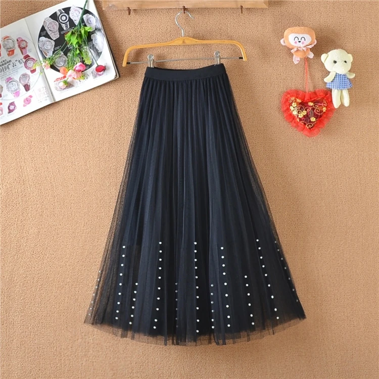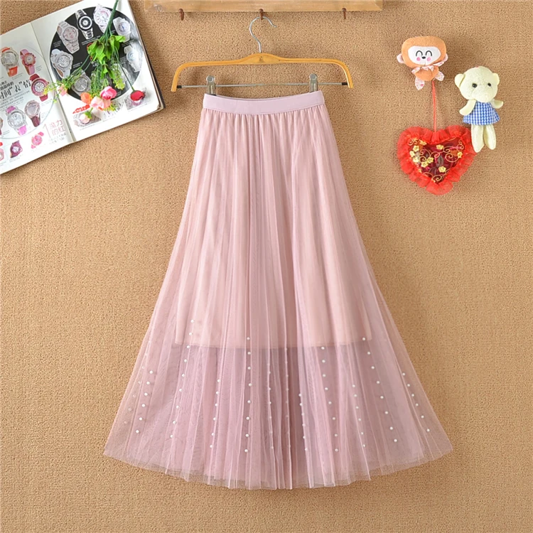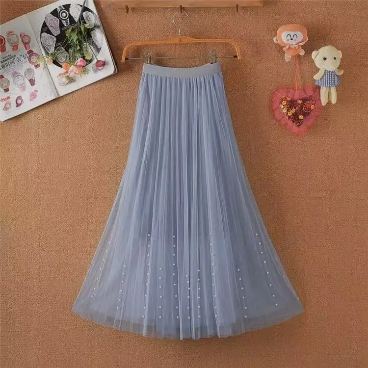 Sweet Bow Tulle Skirt with Natural Waistline Plain Dyed Autumn A-Line Design