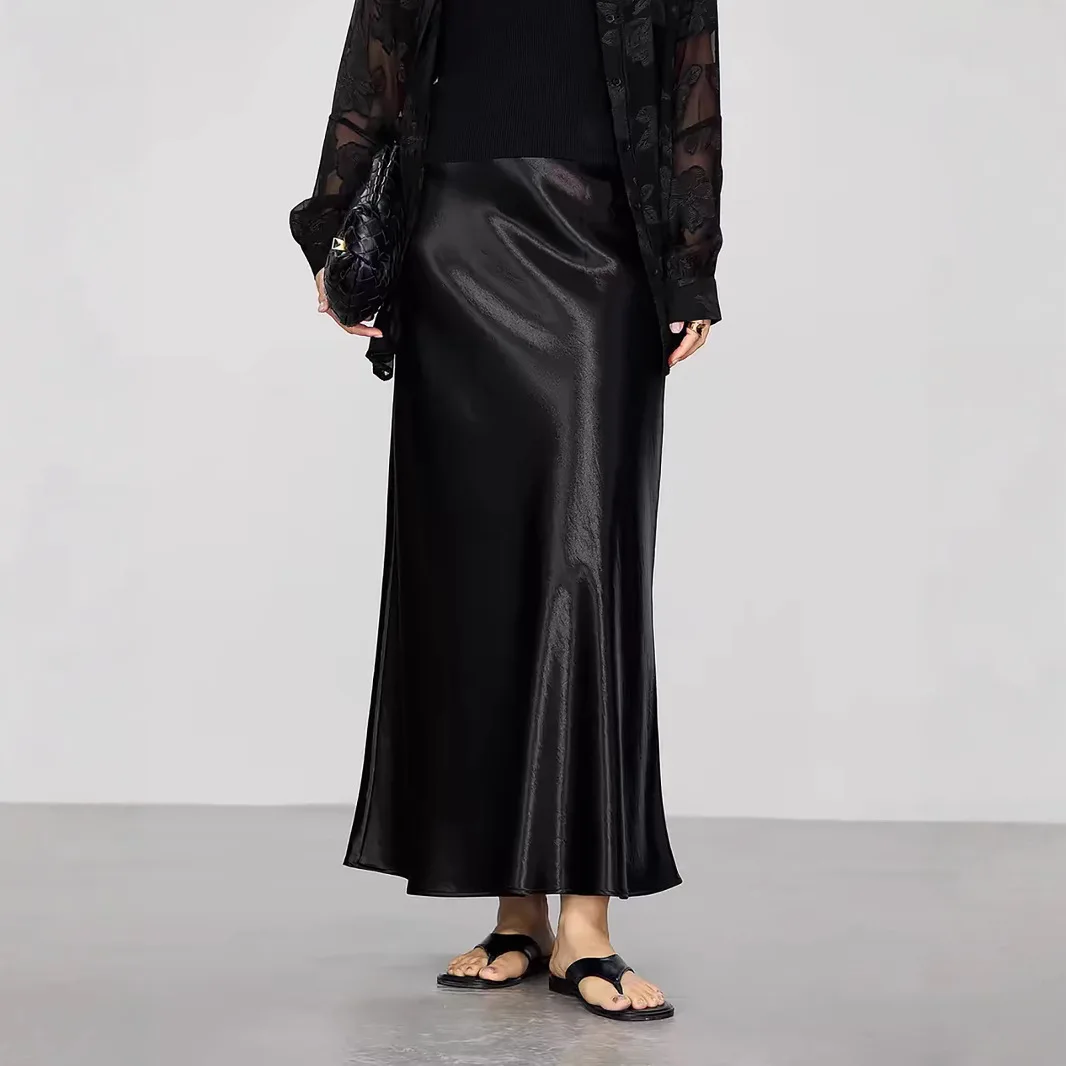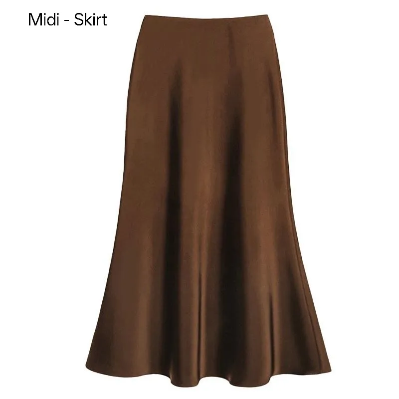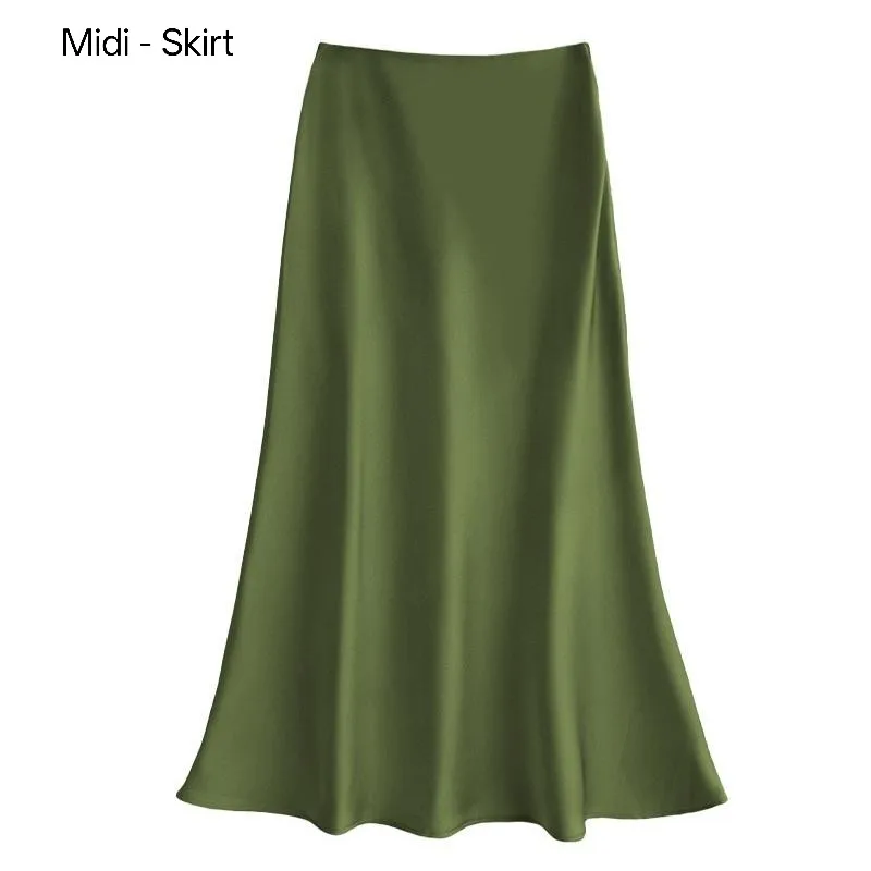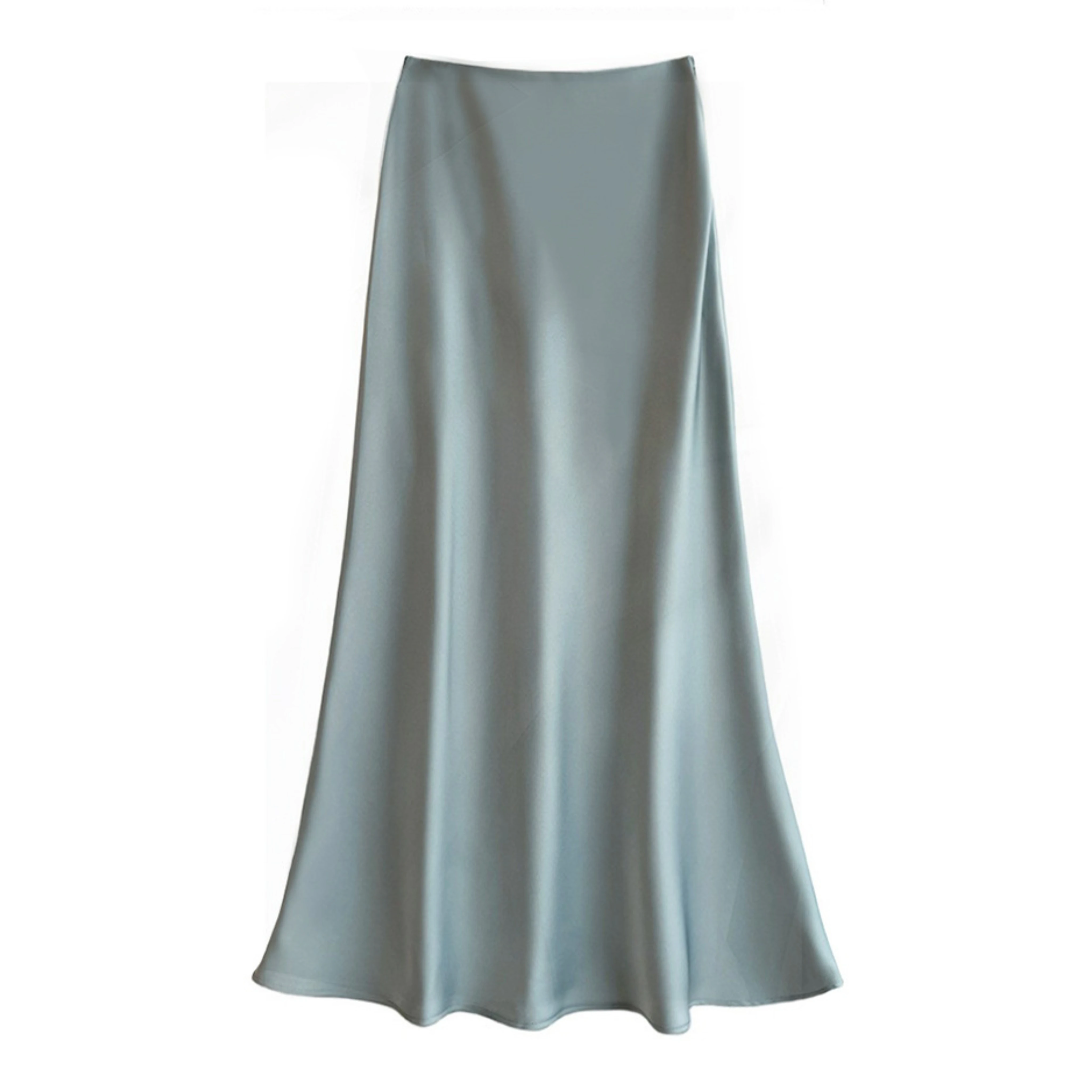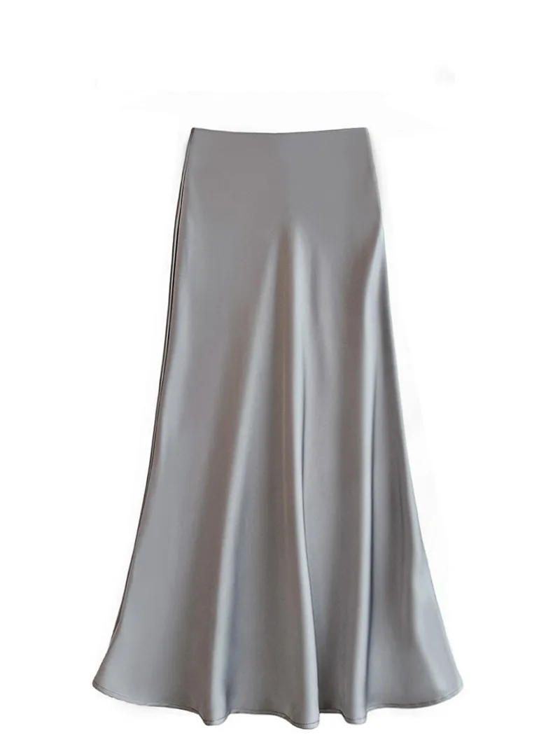 High Waist Mid-Length Satin Slimming Dress Casual Zipper Closure with Plain Dyed Technics
