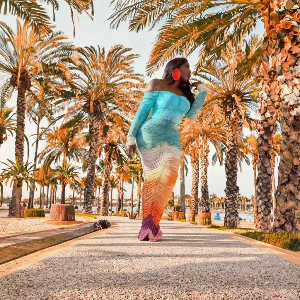 ZYHT 73963 Matte Satin Printed Geometric Pattern Maxi Women Asymmetric One Shoulder Ruched Hem Women Dress