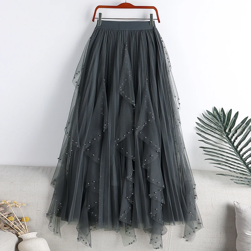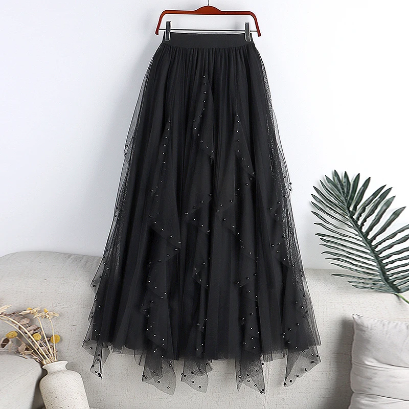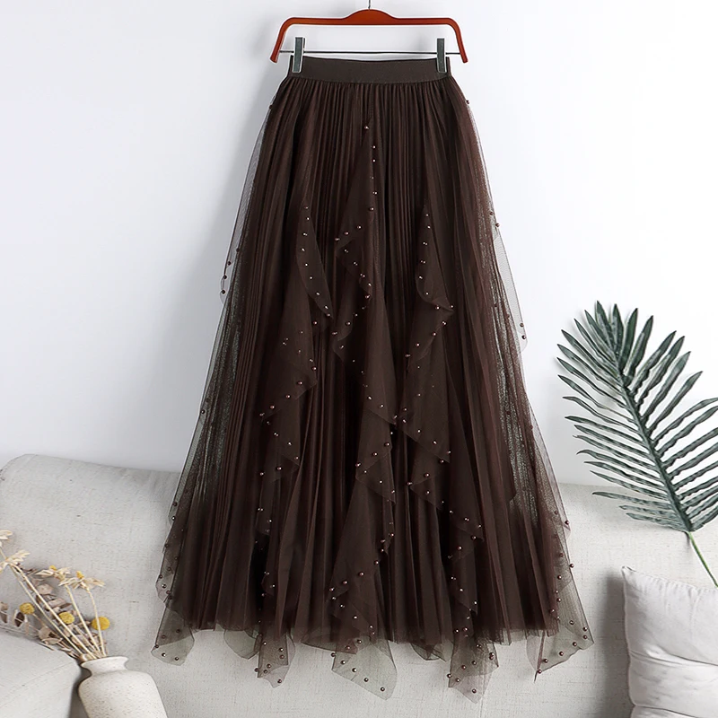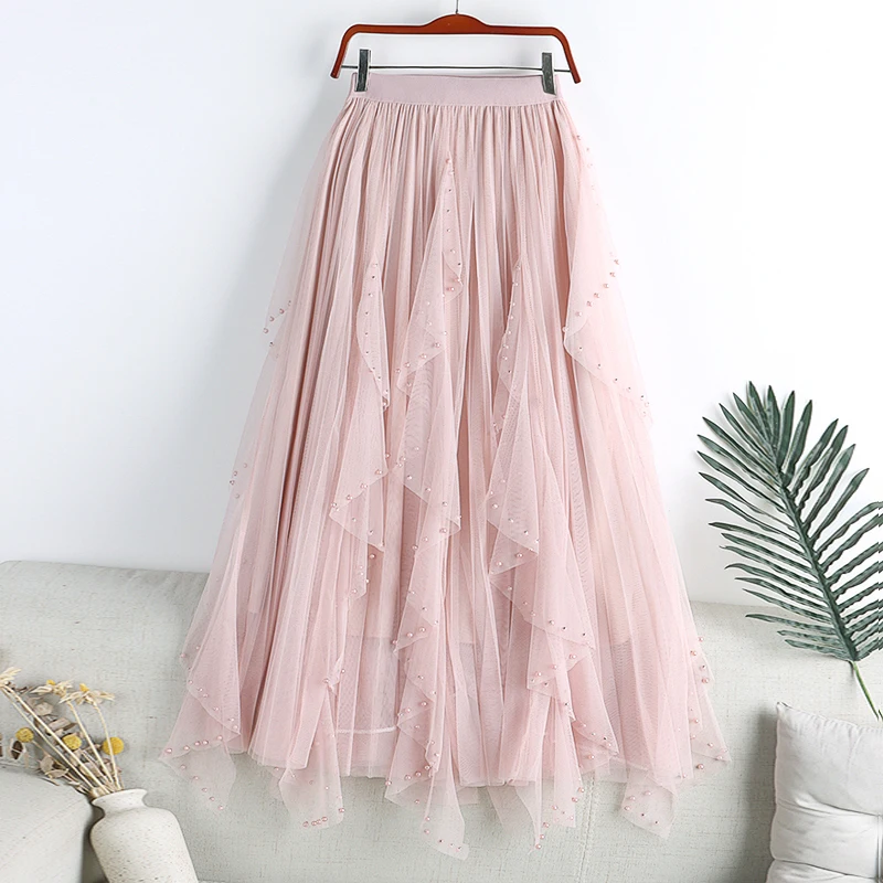 Layered Sweet Bow Tulle Skirt with Natural Waistline Pleated Midi Women with a Line for Casual Office