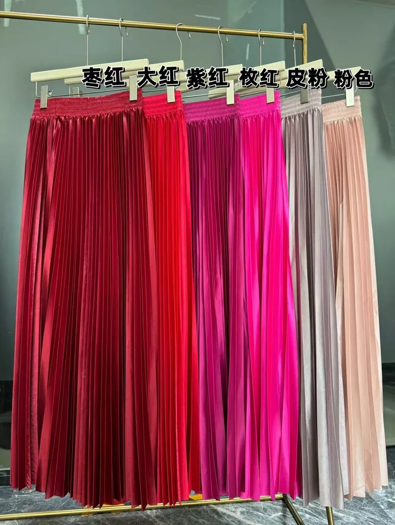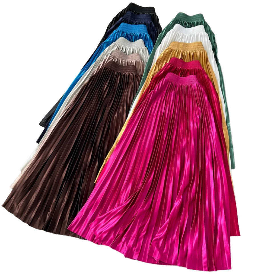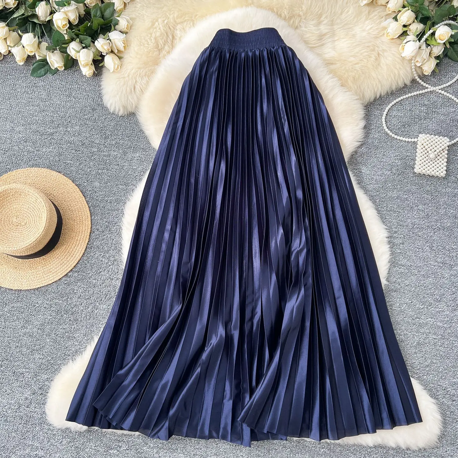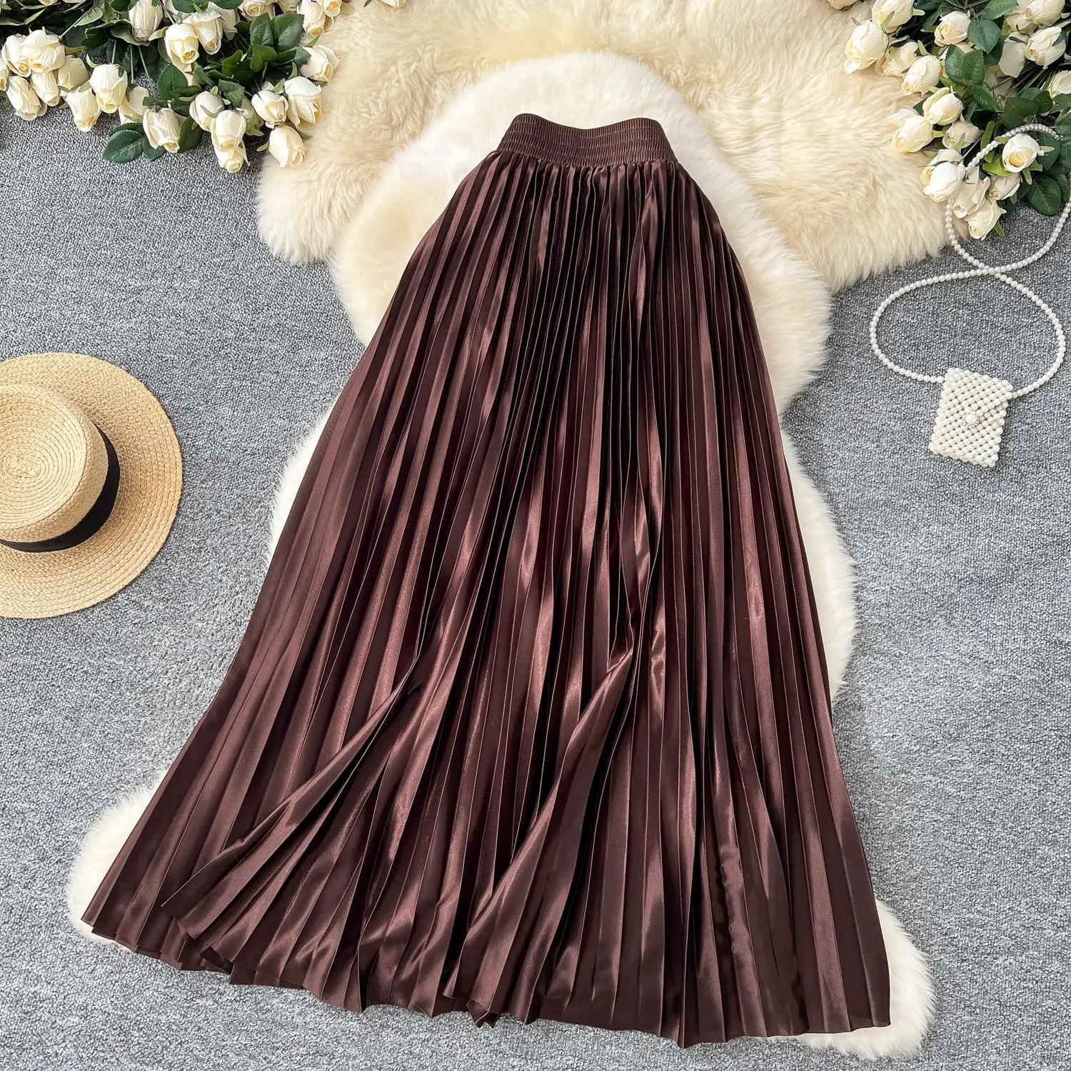 Elastic Sweet Style High Waist Slimming A-line Fluffy Pleated Skirt for Women New Style Hanging Sensation