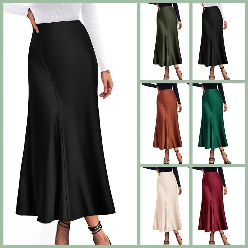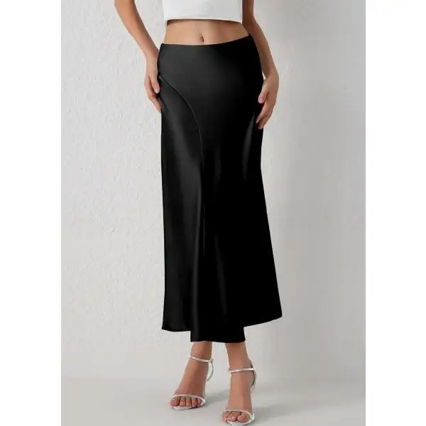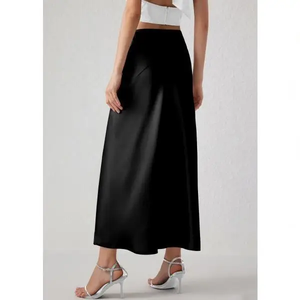 Satin High Waisted A-Line Midi Skirt for Women Casual Elastic Pleated Acetate Fabric High Summer Season
