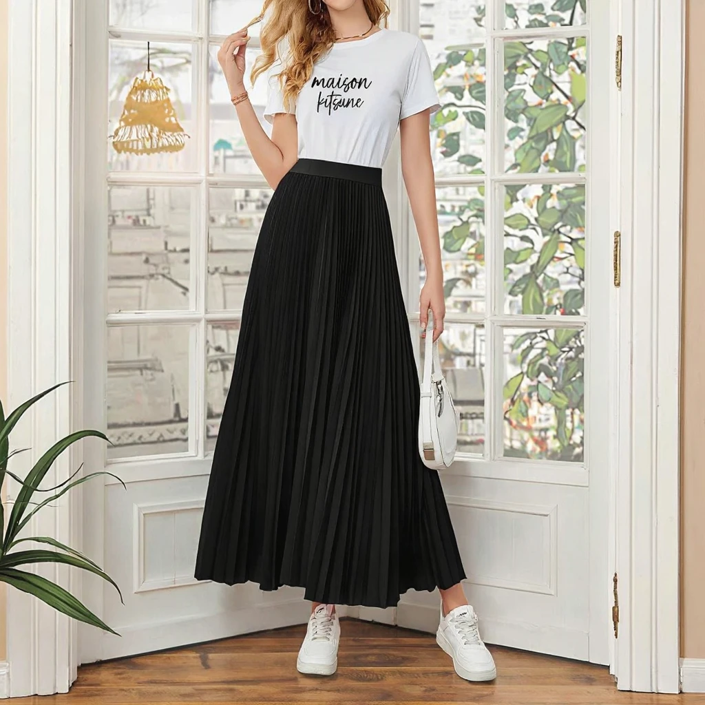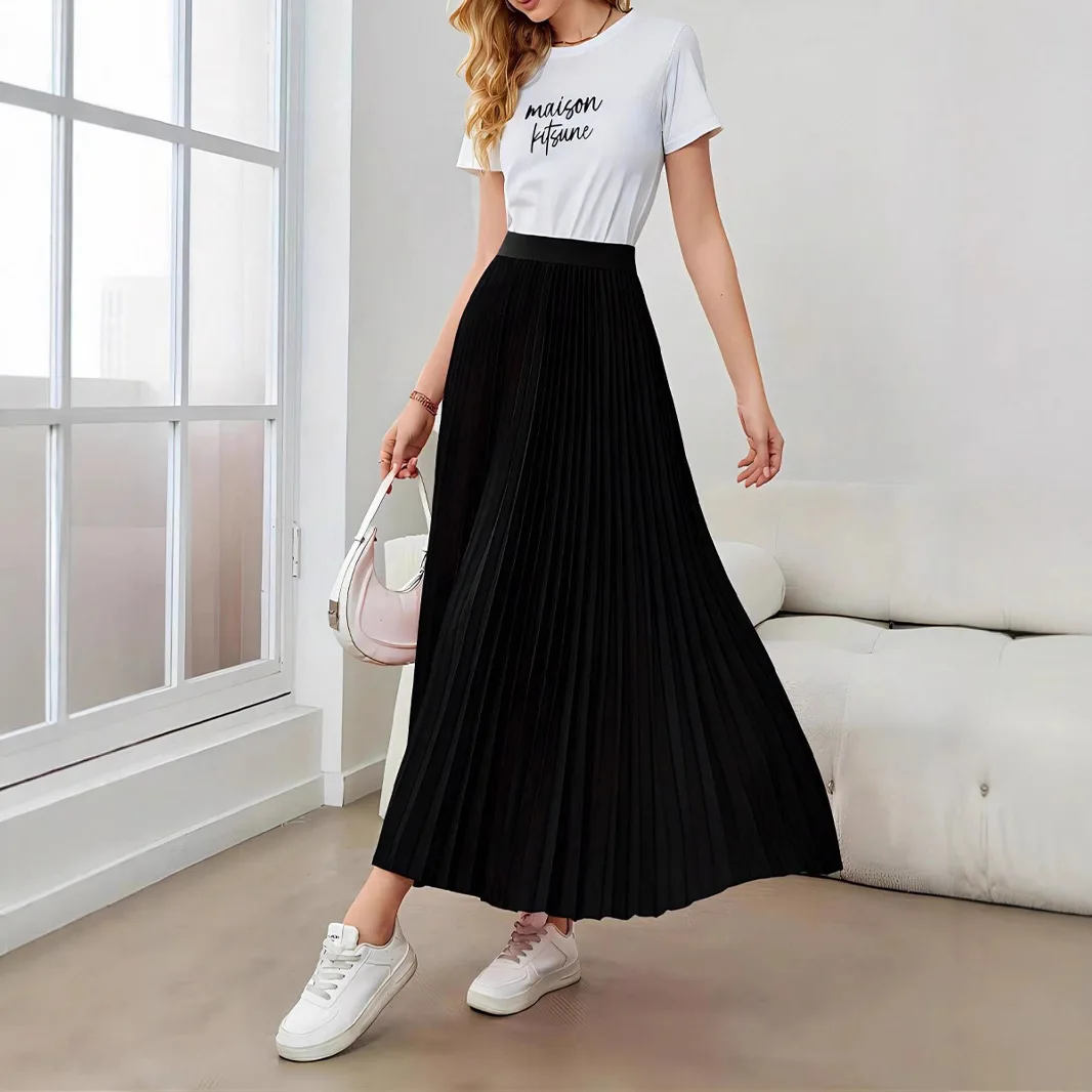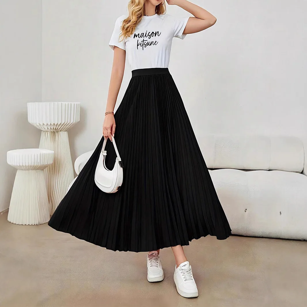 Women's Elegant European Style Flared Umbrella Skirt Breathable Pleated Custom Clothing for Foreign Trade Casual Summer Natural