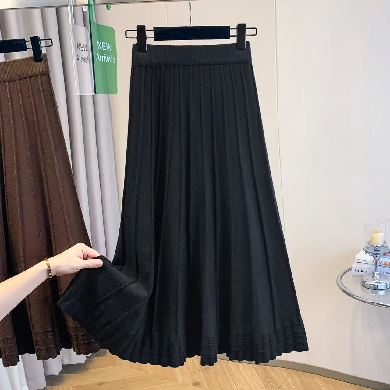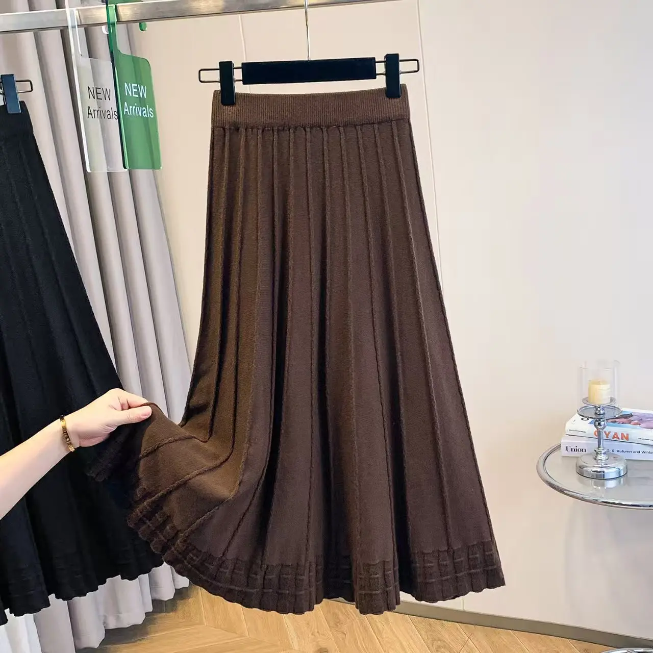 Autumn One Size Formal A-Line Design Solid Pattern Knitted Waistline Breathable Formal Wear