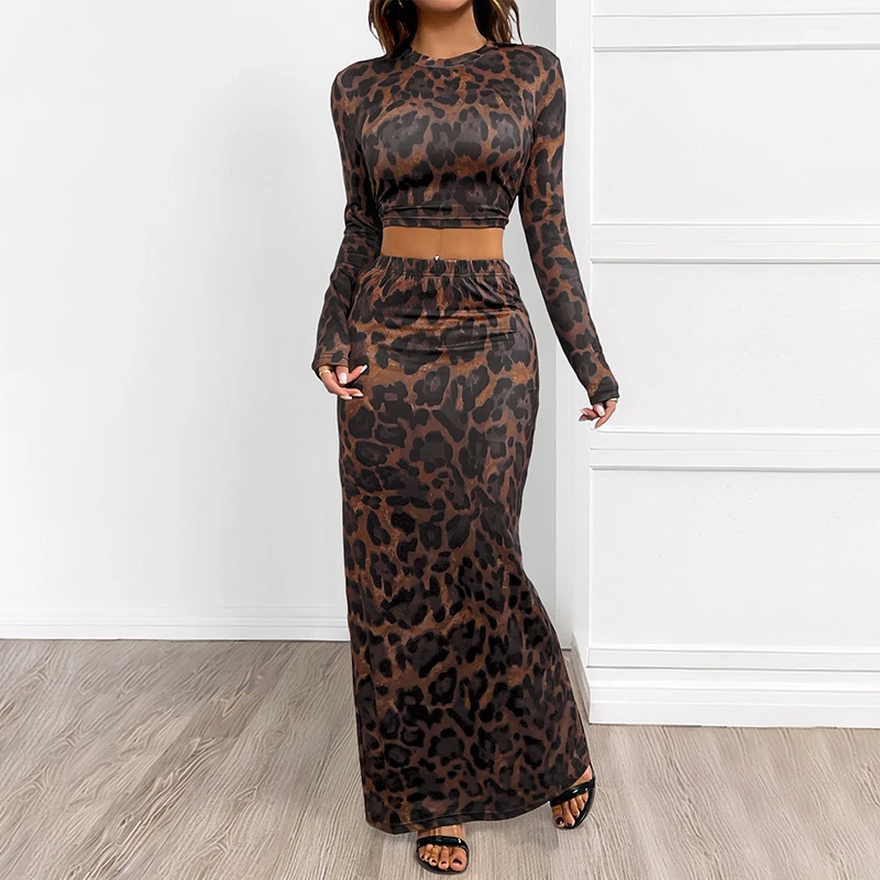 New Fashionable Women's Leopard Print Elastic High Waist Slim Fit Skinny Style Casual Knee Length Tummy Control Feature Set