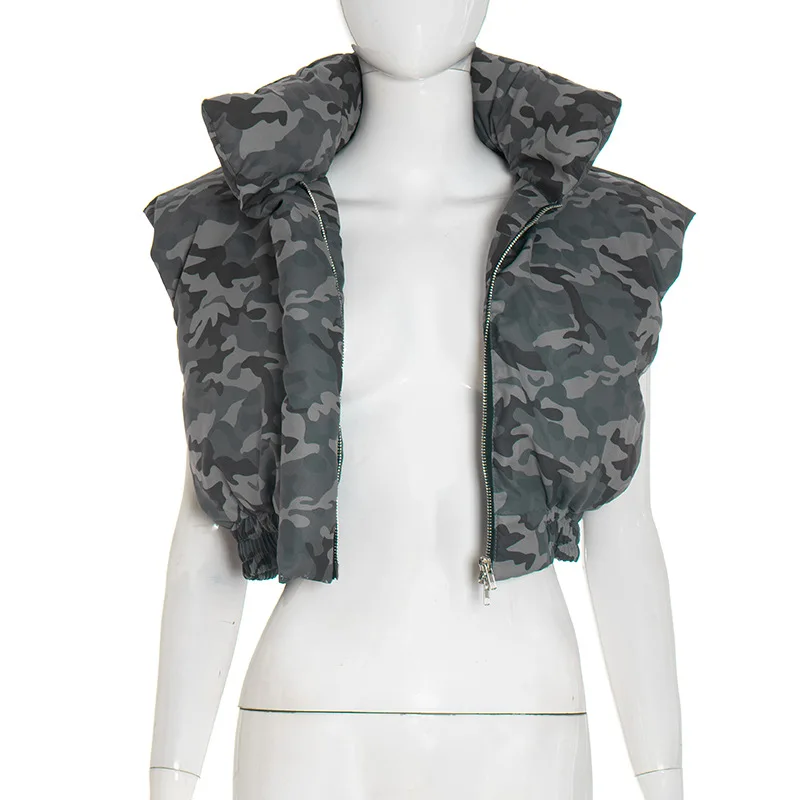 Viviblook D25TP370 Women's Waistcoat Autumn Winter Street Stand Collar Sleeveless Short Zipper Bat Shaped Cotton Jacket