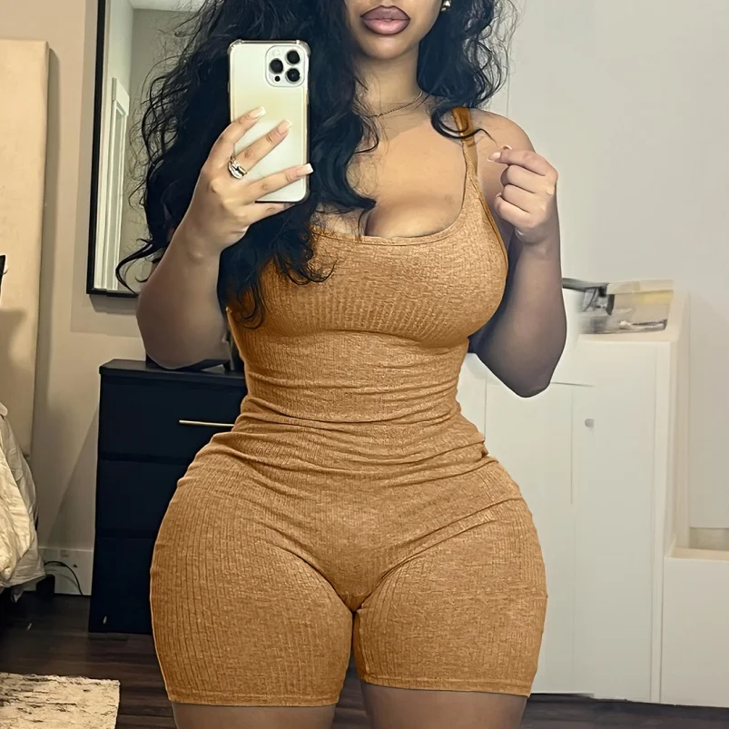 Viviblook C319RP01 Solid Bodycon Cami One Piece Scrub Jumpsuit Rib Knit Romper Gym Fitness Jumpsuit Woman Basic Tight Rompers