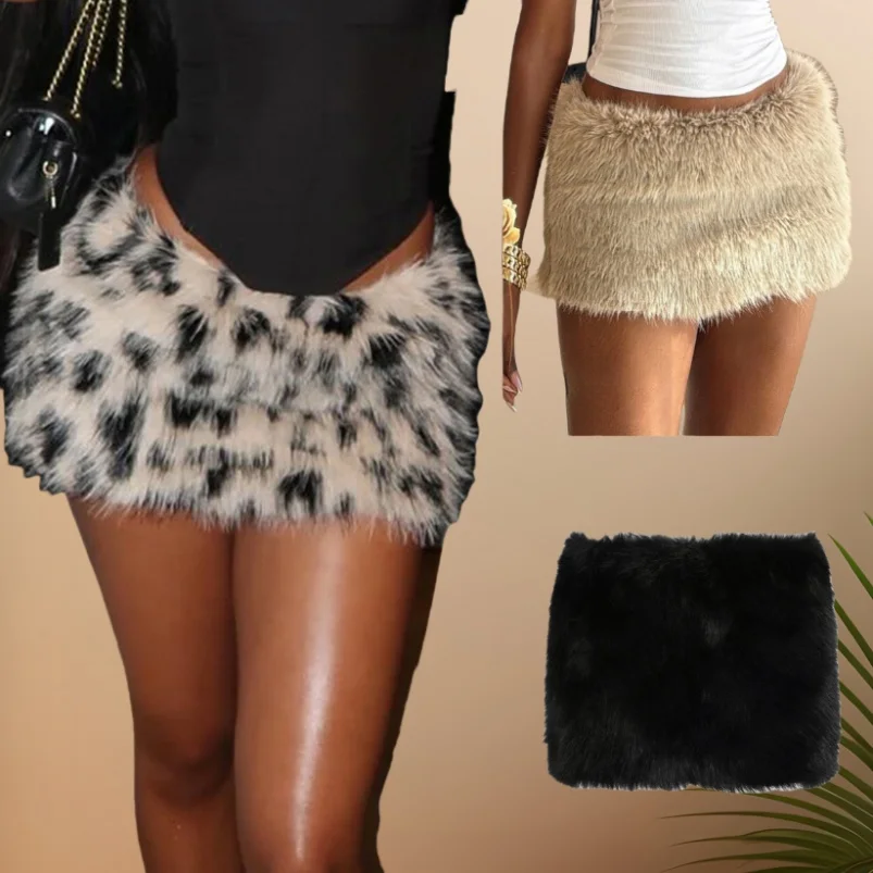 Viviblook Z915SK Women Sexy Spicy Girl with Leopard Print Women's Autumn Winter Fur Mini Skirts for Ladies