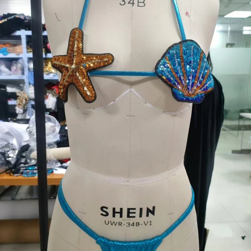 Viviblook Z418ST09 2026 Summer Ladies Sexy Split Lace up Swimsuit Star Shell Sequin Bikini Set Swimwear Swim Suits Women
