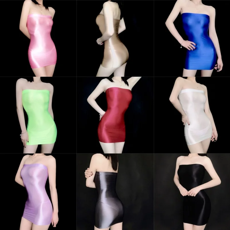 Viviblook C510DS Summer New Arrivals Womens Strapless Dresses Mini Solid Color Sexy Nylon See Through Ladies Fashion Dress