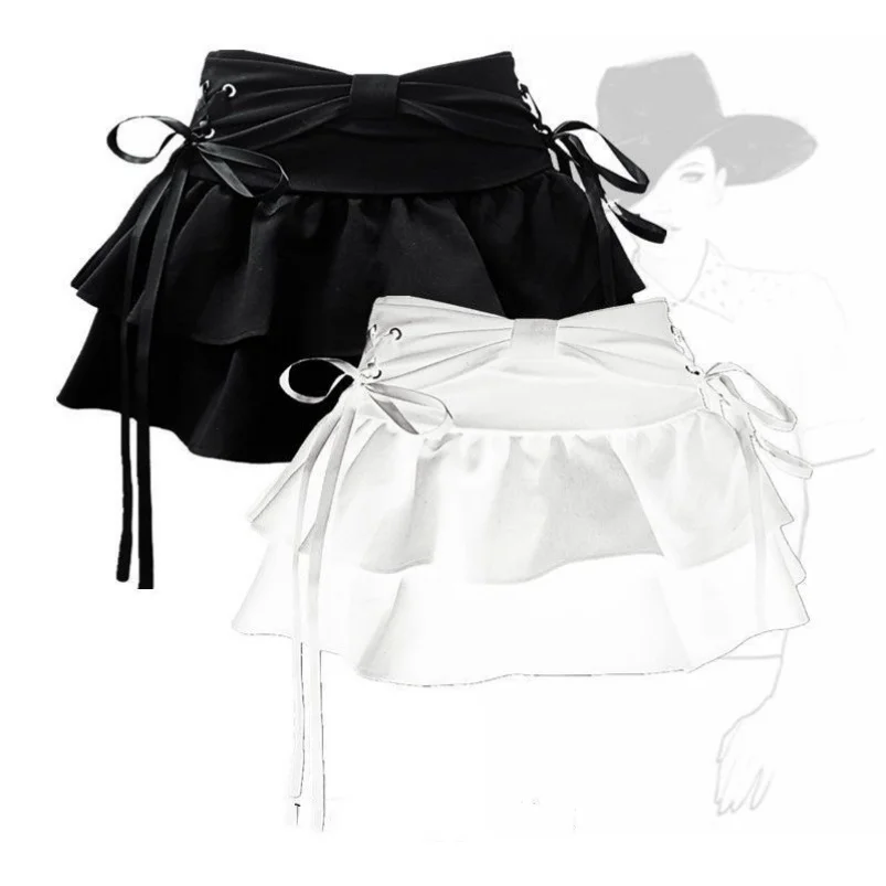 Viviblook Z513SK02 Women Vintage Hot Girl Bow Tie Pleated Skirt A-Line High Waist Slimming Short Skirt Summer Shorts Mini Skirt