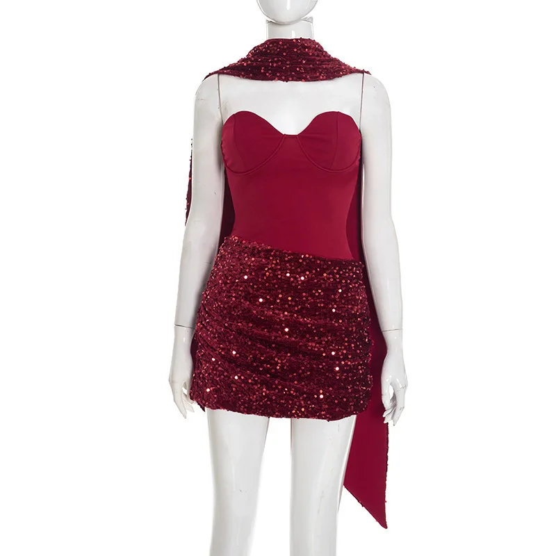 Viviblook J25DS459 Women's Party Dress New Casual Collarless Sleeveless Asymmetrical Pleated Mini Dresses