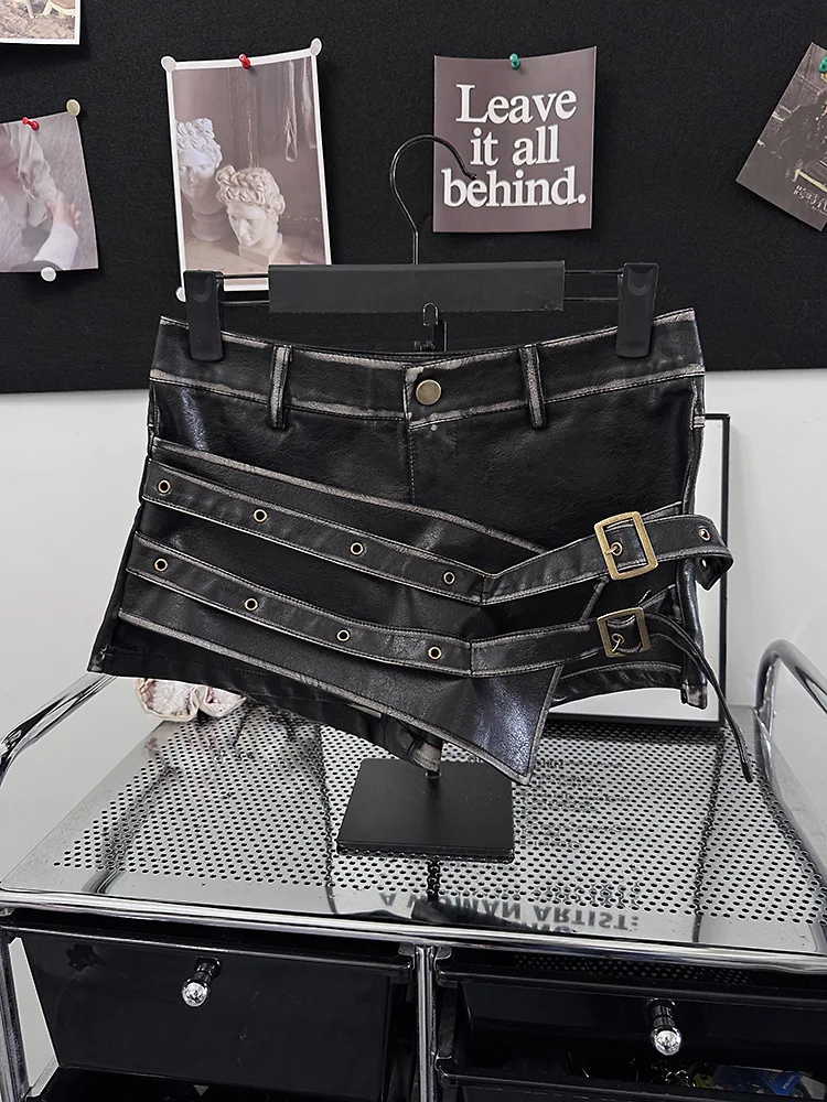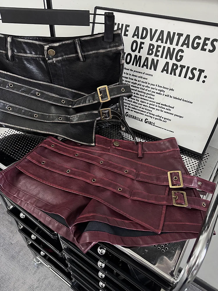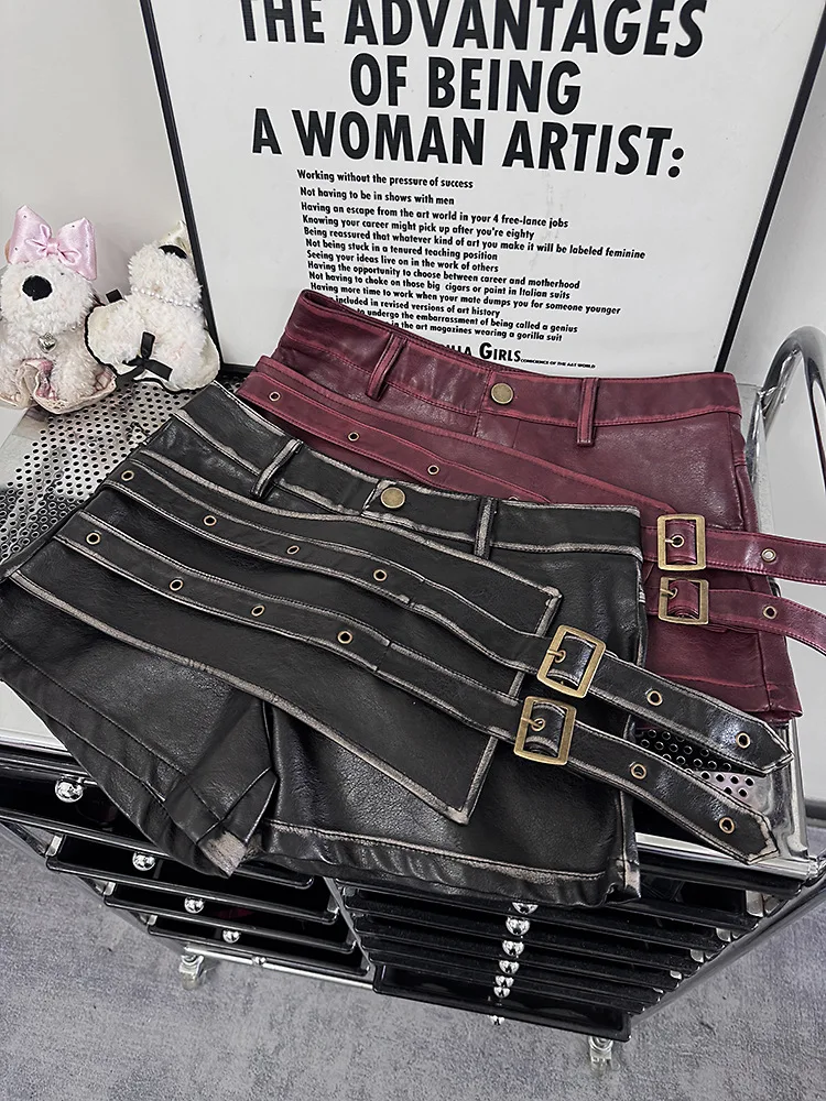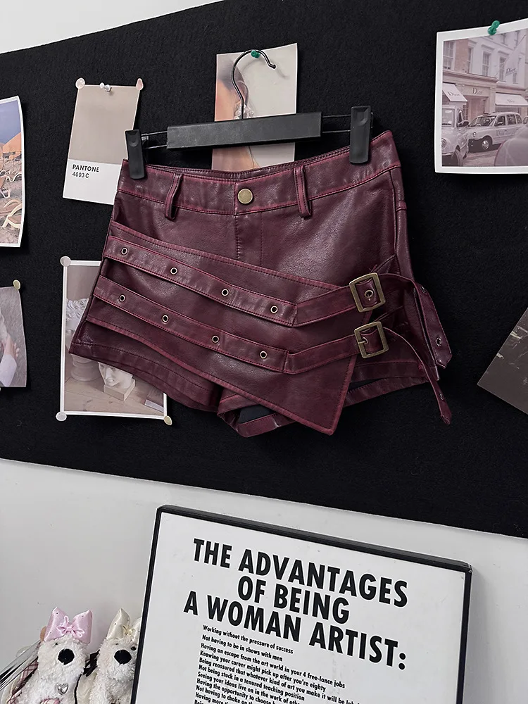 Viviblook Z1108PT New Street Hot Girl Female Asymmetric High Waist Leather Shorts