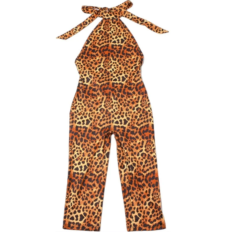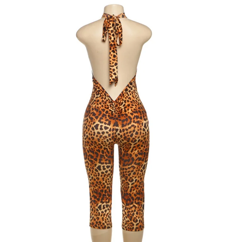 Viviblook Z417JP01 Summer New Women Sleeveless Halter Sexy Bodysuit Short Rompers Leopard Pattern Knitted Casual Jumpsuit