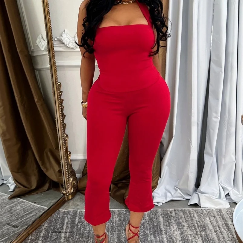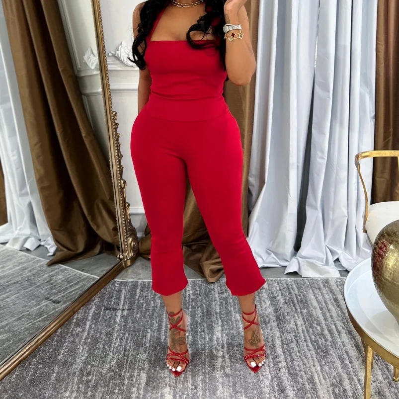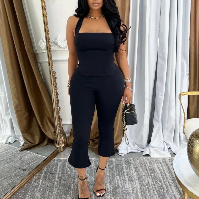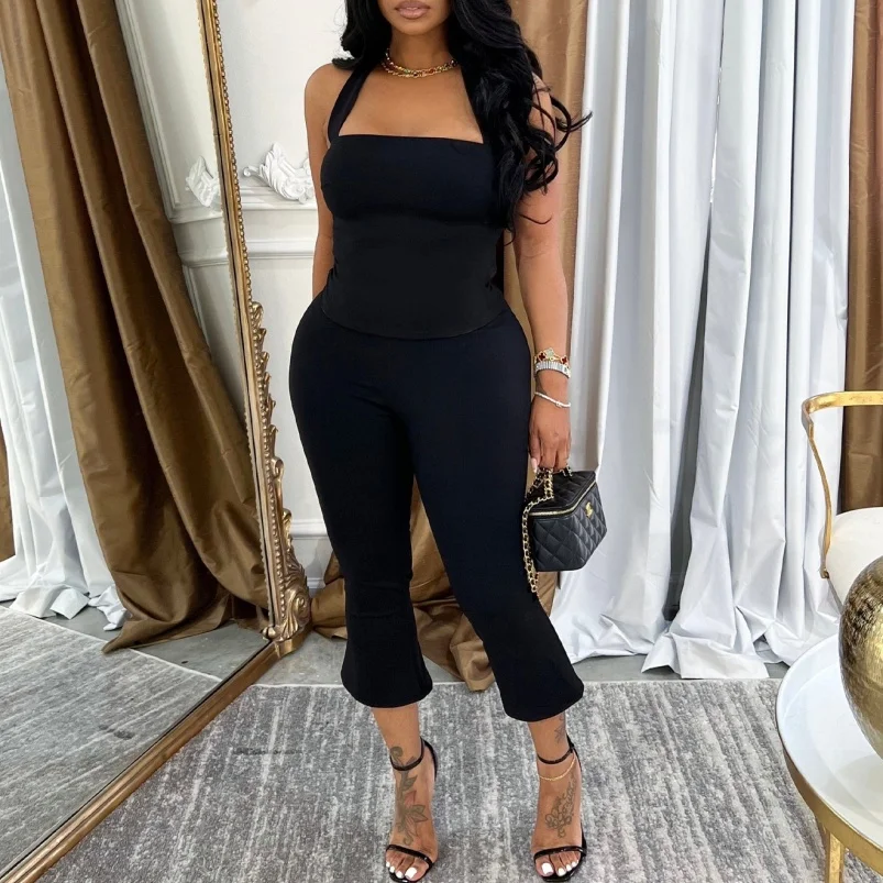 Viviblook Z610ST04 Summer Sexy New Halter Crop Top Slim Cropped Pants Set Matching 2 Piece Set Sexy Casual Women Clothing