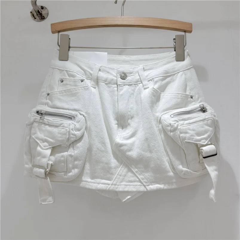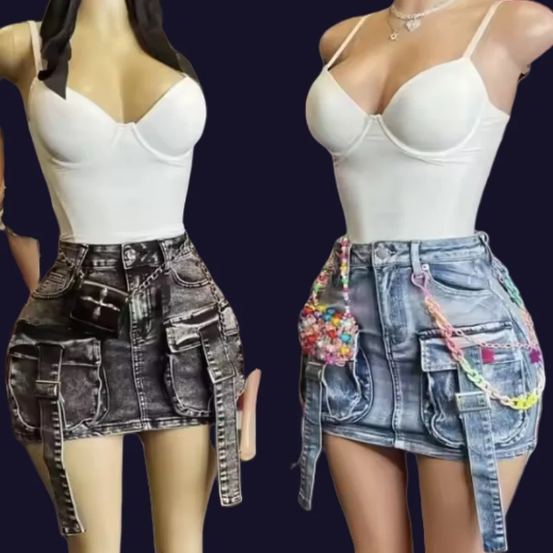 Viviblook Z409ST04 Summer Streetwear Sleeveless Bodysuit tank Tops and Mini Pocket Cargo Denim Skirt 2 Piece Set Women Outfits
