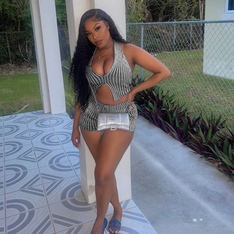 Viviblook C422ST02 Women's Sets Outfits Striped Knit Streetwear Tank Top With Short 2 Piece Casual Set Women Athletic Wear