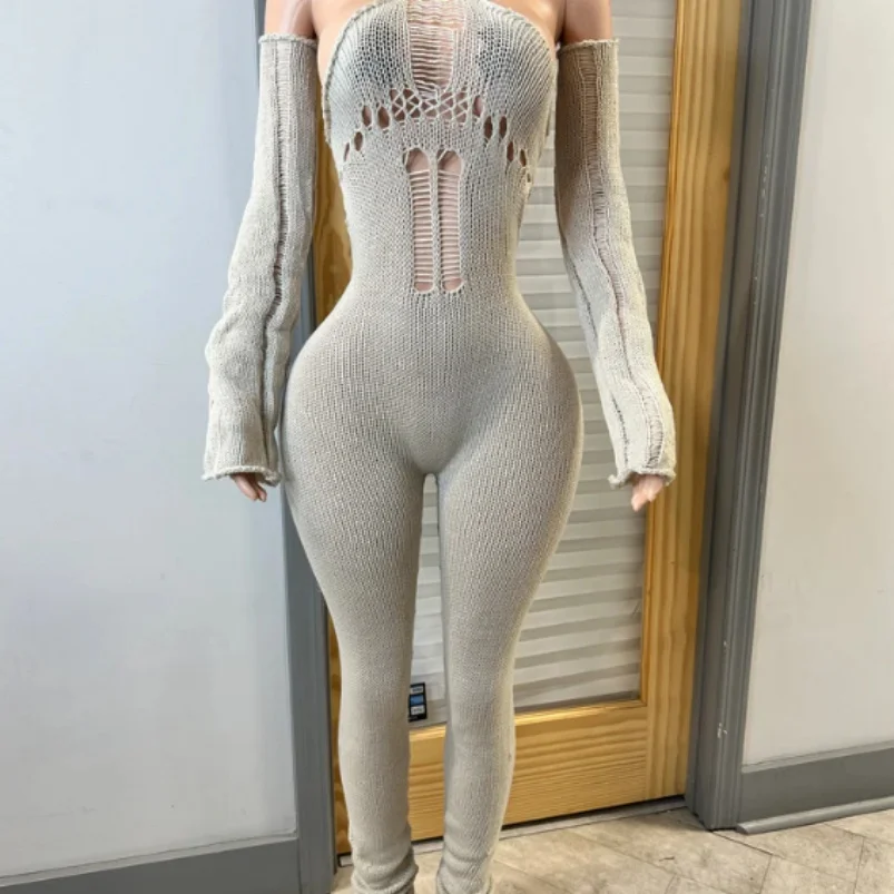 Viviblook K23JP291 Sexy Women Bodycon Hot Selling Sexy Halter Lace up Hollow Jumpsuit Street Nightclubs One Pice Jumpsuit