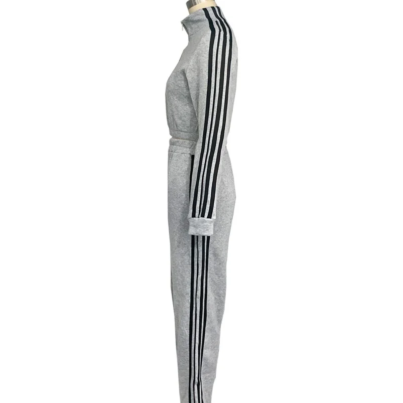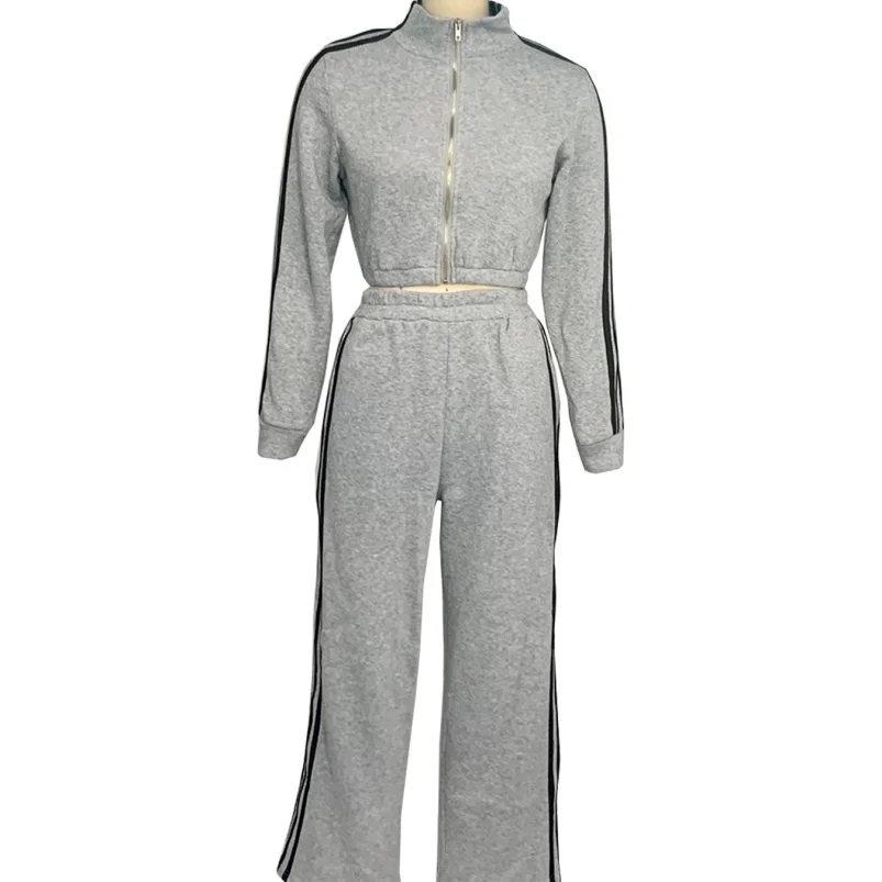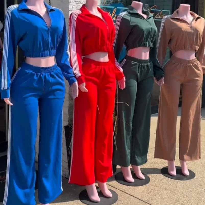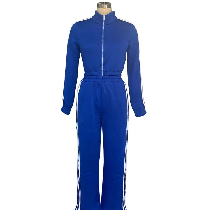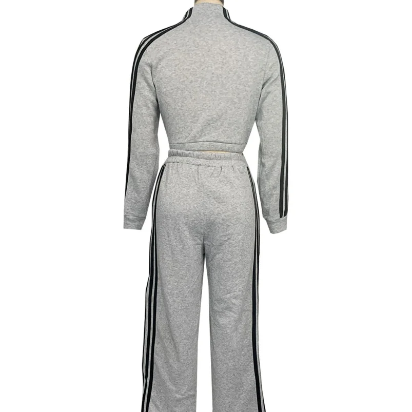 Viviblook Z1108ST04 Women Casual Long Sleeve Zip Crop Tops and Wide Leg Pants Matching Tracksuits Striped Print 2 Piece Sets