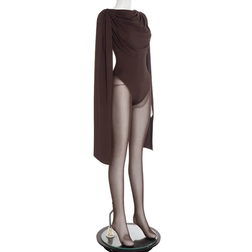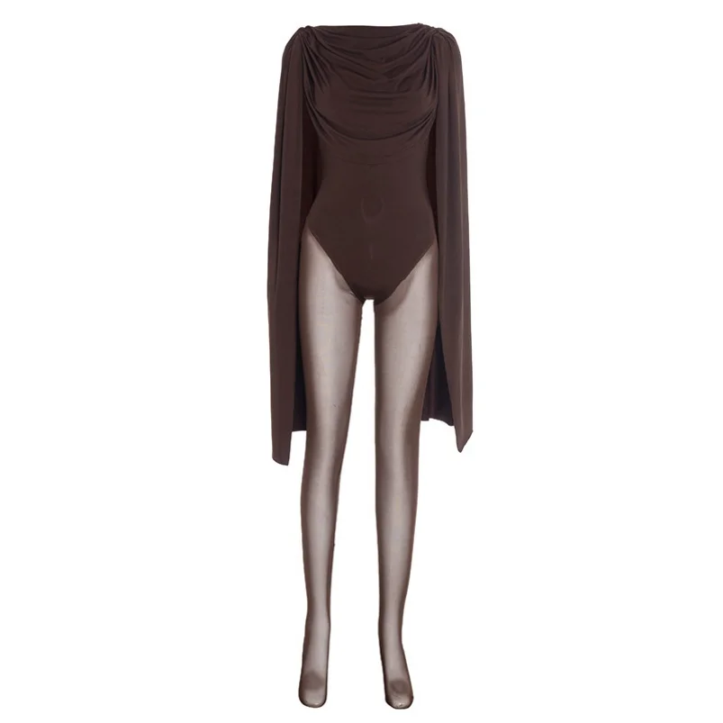 Viviblook Q25JP302 New Street Sexy Autumn Winter New Solid Color Patchwork Mesh Sexy One Piece Jumpsuit for Women Bodycon