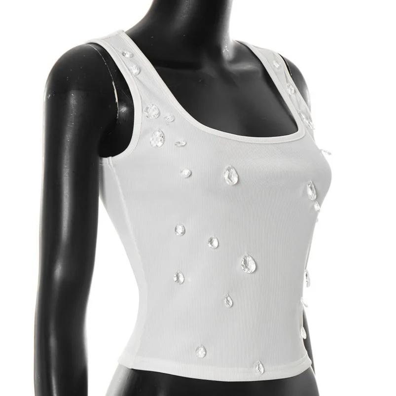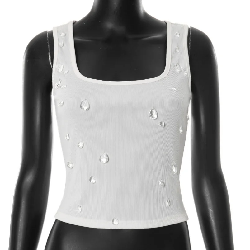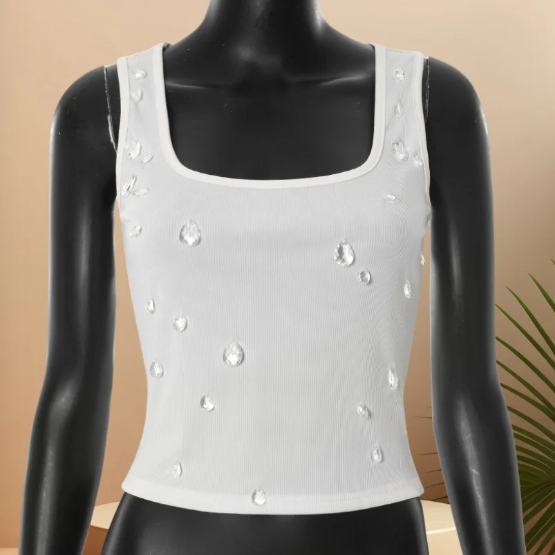 Viviblook Y25TP277 Ladies Outfits Sexy Tank Top Autumn New Sexy Solid Color Vest Rhinestone Strapless Crop Top for Women