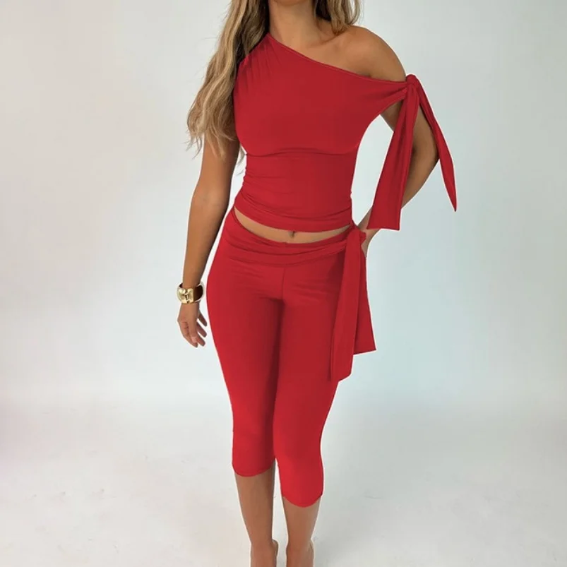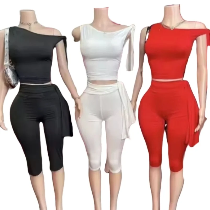Viviblook Z0108ST01 New Women Outfit 2026 New Fashion Street Slanted Collar Sleeveless Top Slim Fit Lace up Shorts Two Piece Set
