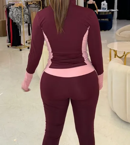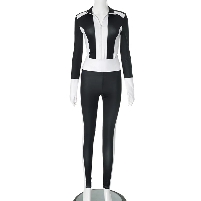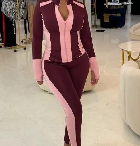 Viviblook D24ST665 2026 New Fashion Sports Tight Long Sleeve Color Contrast Splicing 2 Piece Set Women Outfit Wear Jogging Set