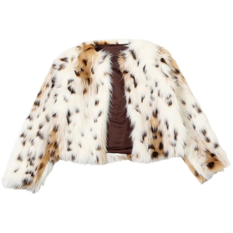 Viviblook Z903TP01 Autumn Winter New Women's Cardigan Jacket Fashion Leopard Pattern Spotted Warm Long Sleeve Fur Coat