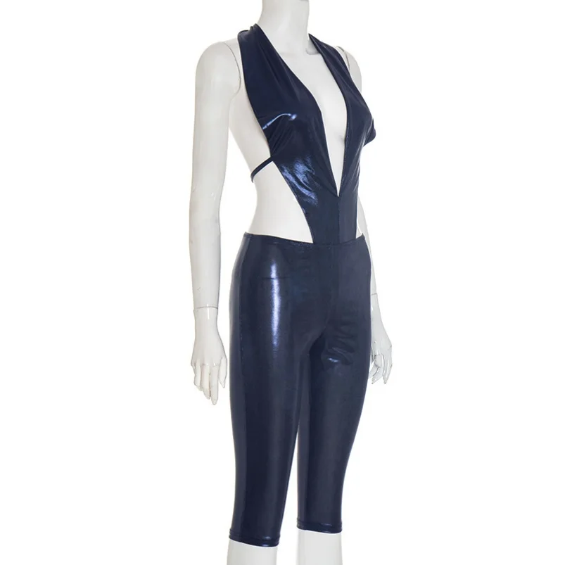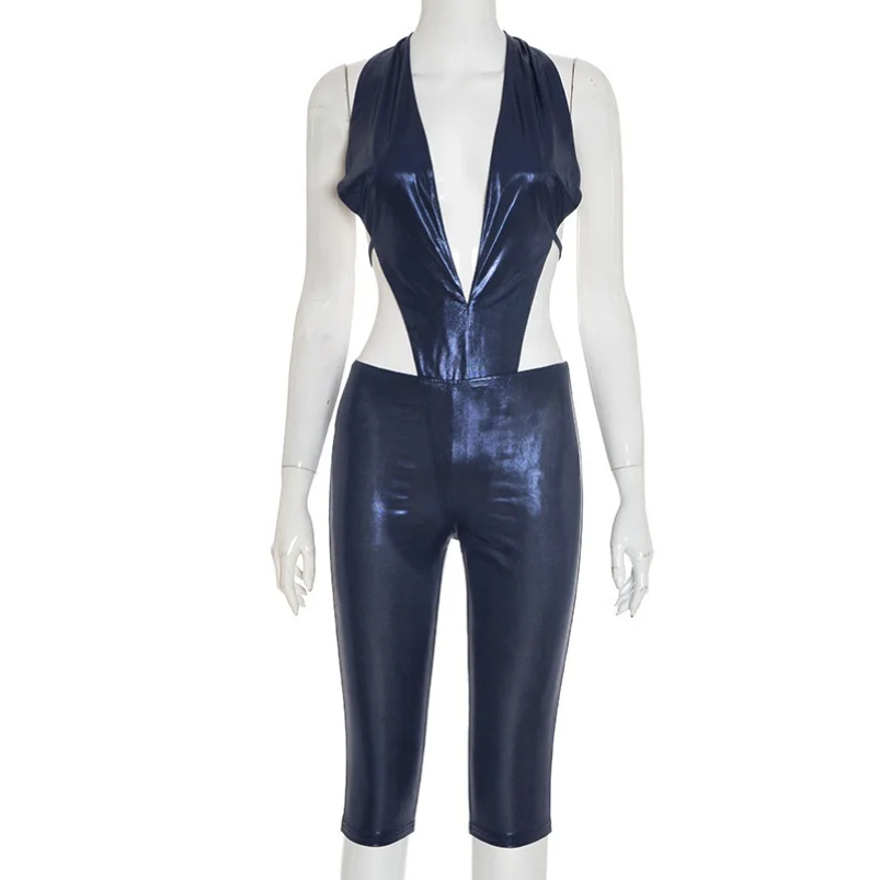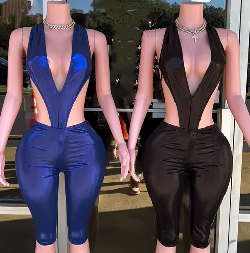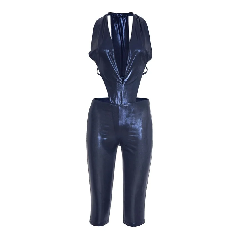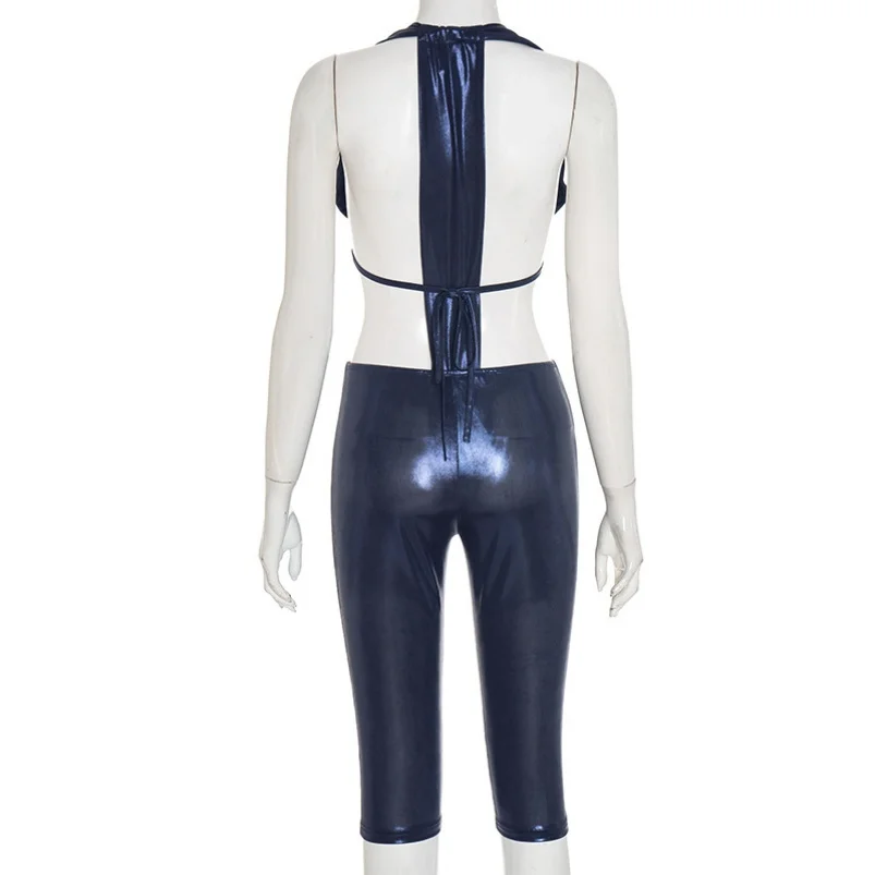 Viviblook J25ST315 Sexy Women Outfits V-neck Bodysuits High Waist Skinny Cropped Pants 2 Piece Set for Ladies