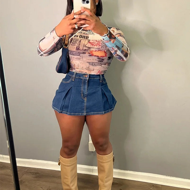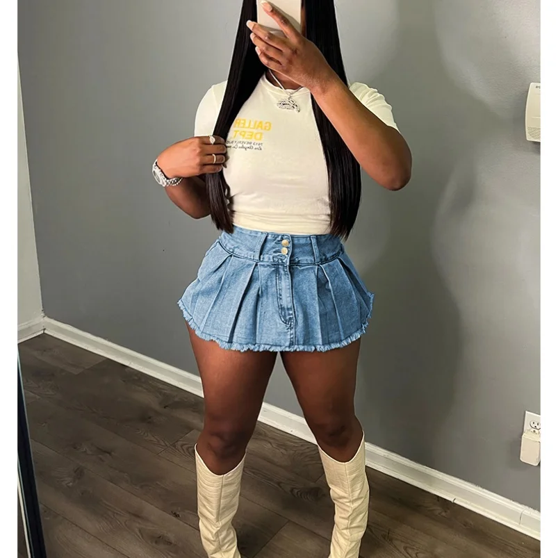 Viviblook C88SK01 Cute Short Denim Skirt Wholesale Denim Low Waist in Stock Blue Short Skirt Ladies Button Skirts