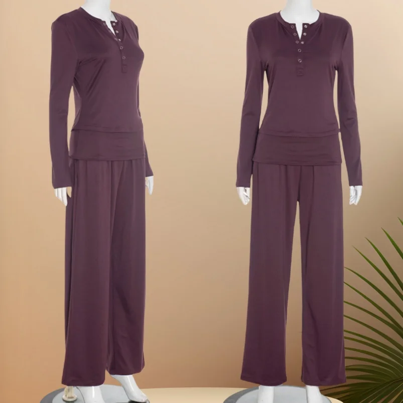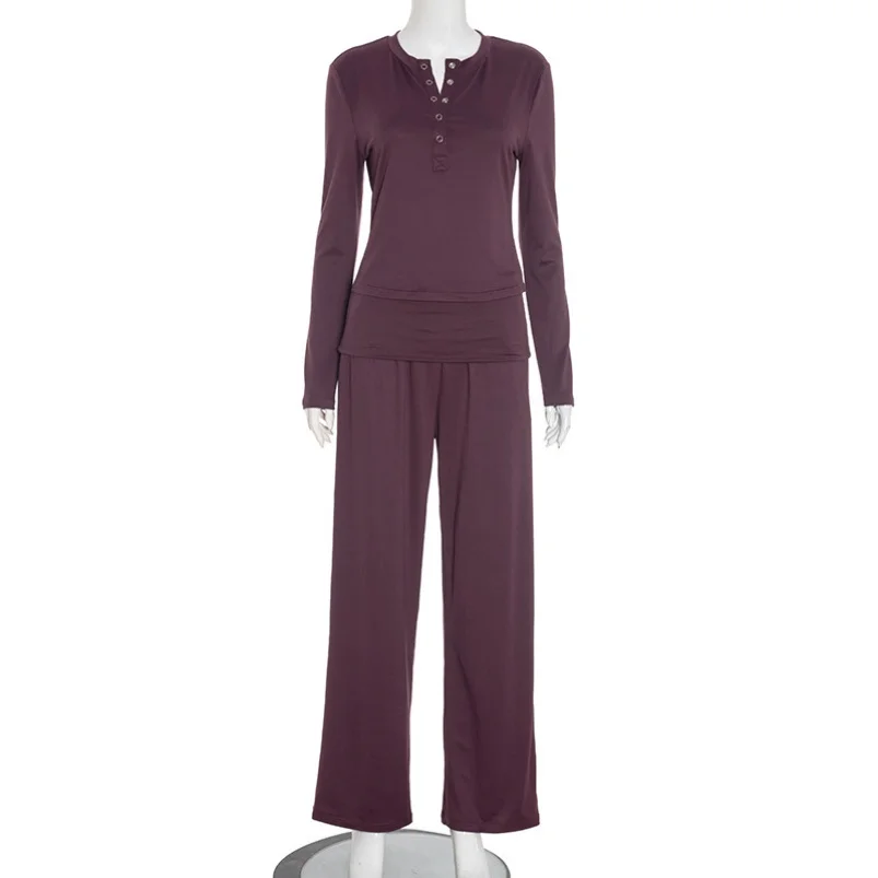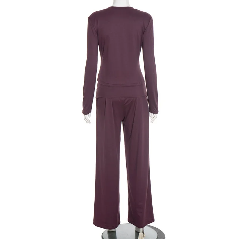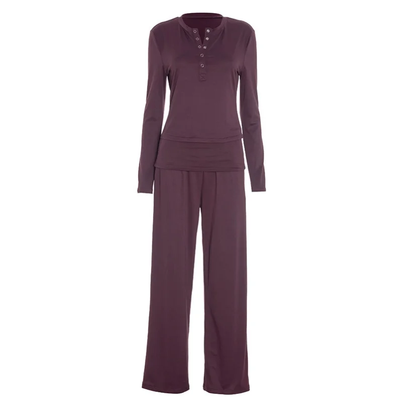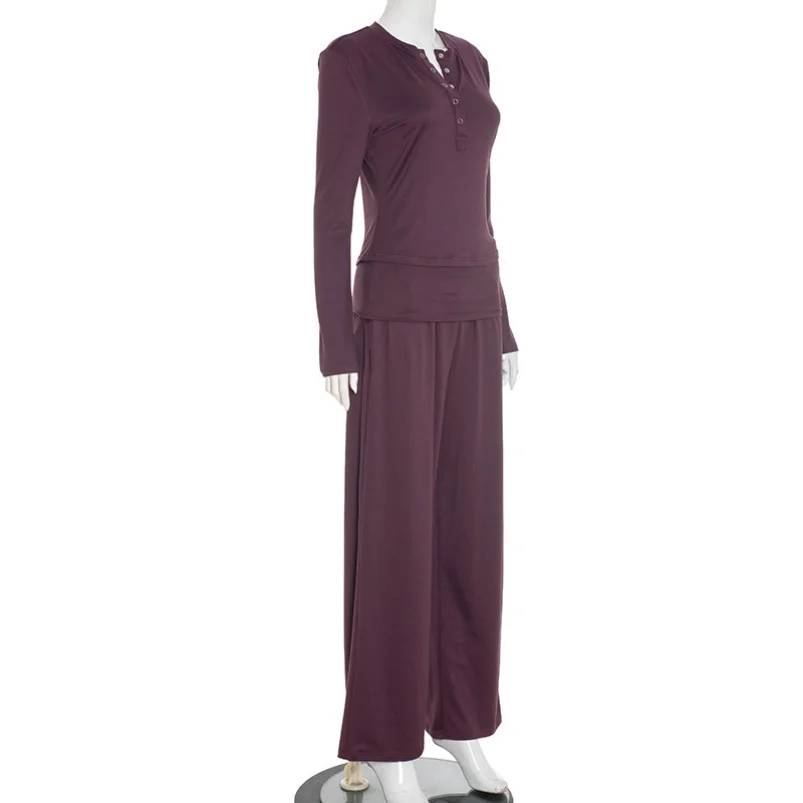 Viviblook J25ST267 New Outfits Autumn Loungewear Women Sets Loose Button Down Long Sleeves and Wide Leg Pants Set for Women