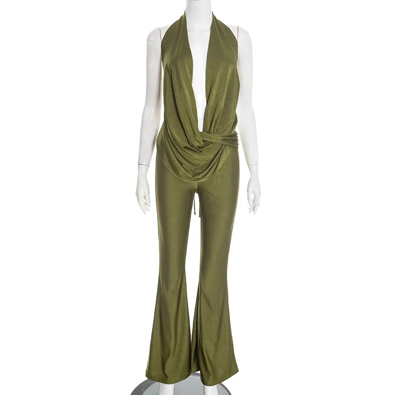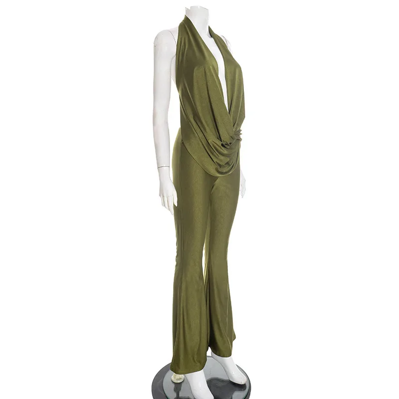 Viviblook D25JP554 Women's Sleeveless Jumpsuit Sexy Hollow Out Halter Swinging Collar Backless Club Jumpsuit