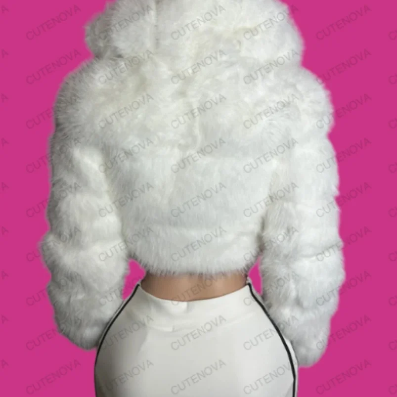 Viviblook Z730ST02 New Arrival Girl's Clothing Set White Set Long Sleeved Zipper Fur Jacket and Mini Skirt 2 Piece Set