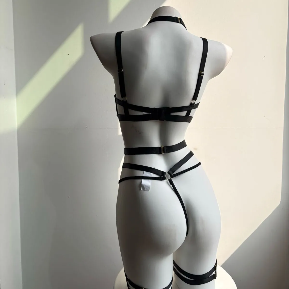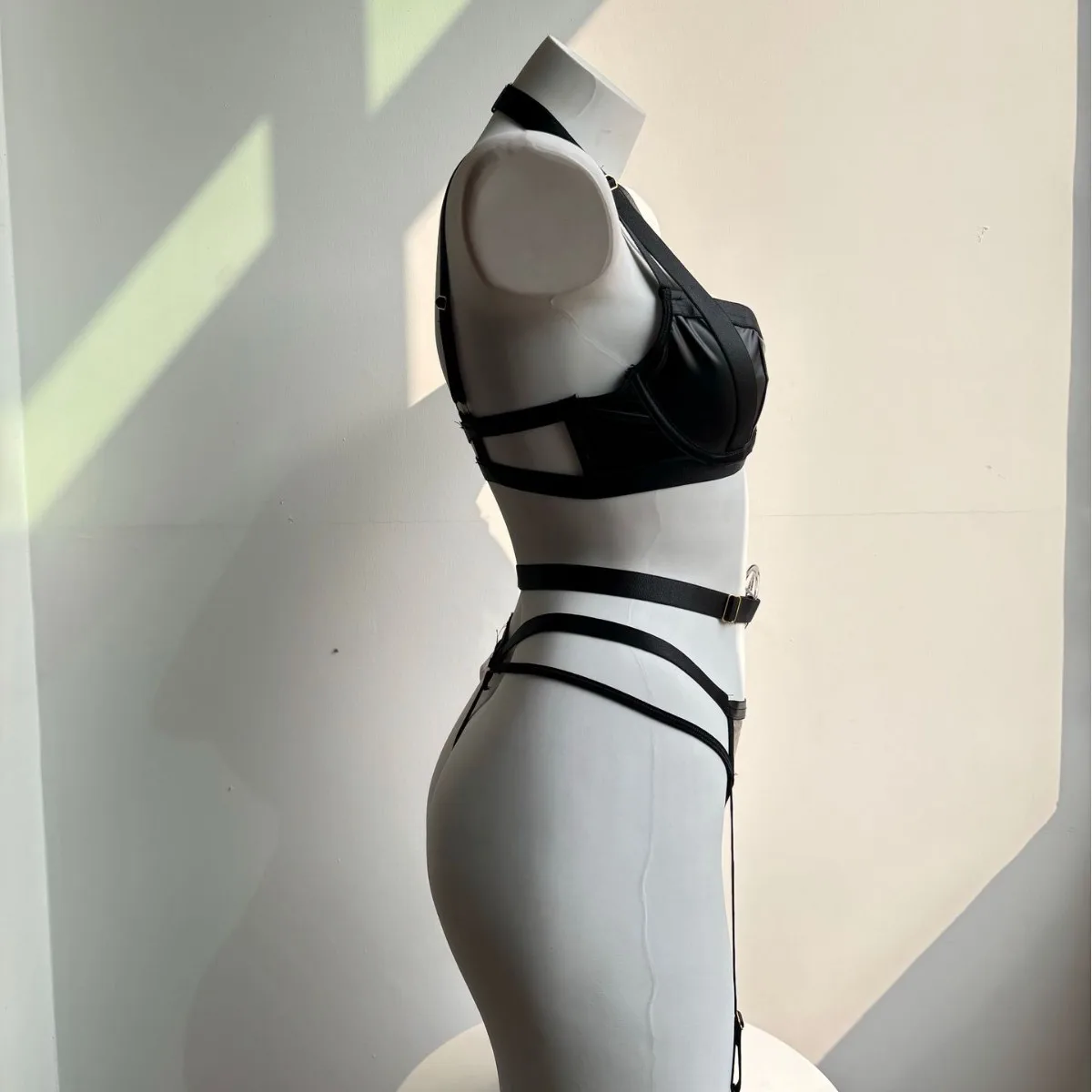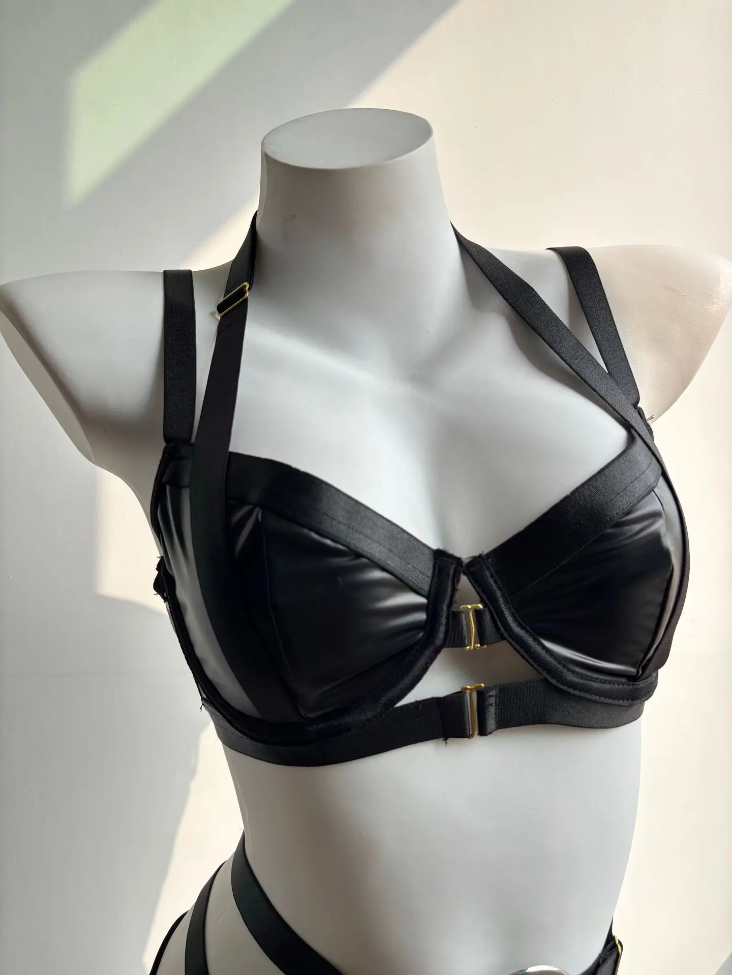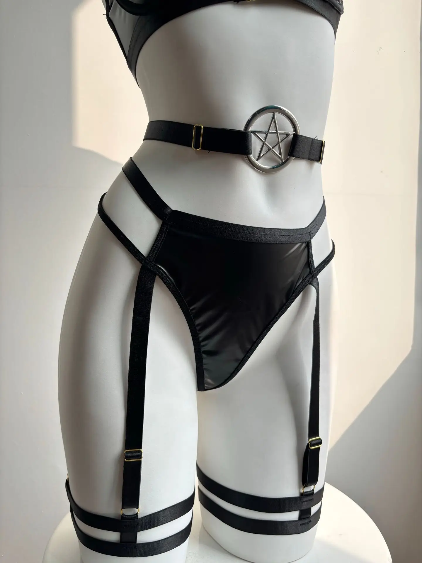 2026 Cross-Border New Arrival Sexy Strappy Crisscross Biker Outfit PU Leather Waist Belt Leg Cuffs Sensual Lingerie Set
