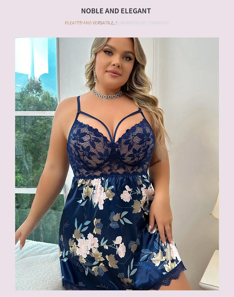 2026 Cross Border Auntie Lace Embroidered Thin Floral Dress Sexy Pure Desire Fat Granny Sleeping Skirt Thong Two Piece Set