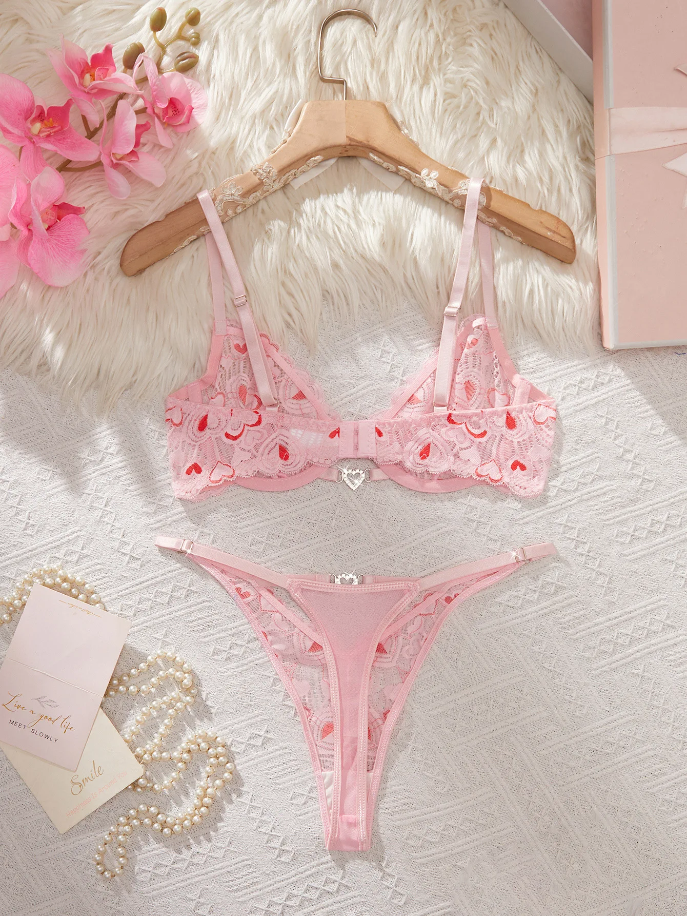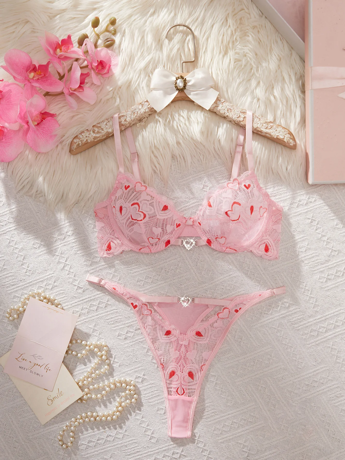 2026 Cross-Border European & American Love Lace Print Underwire Push-Up Valentine's Day Sexy Lingerie Set