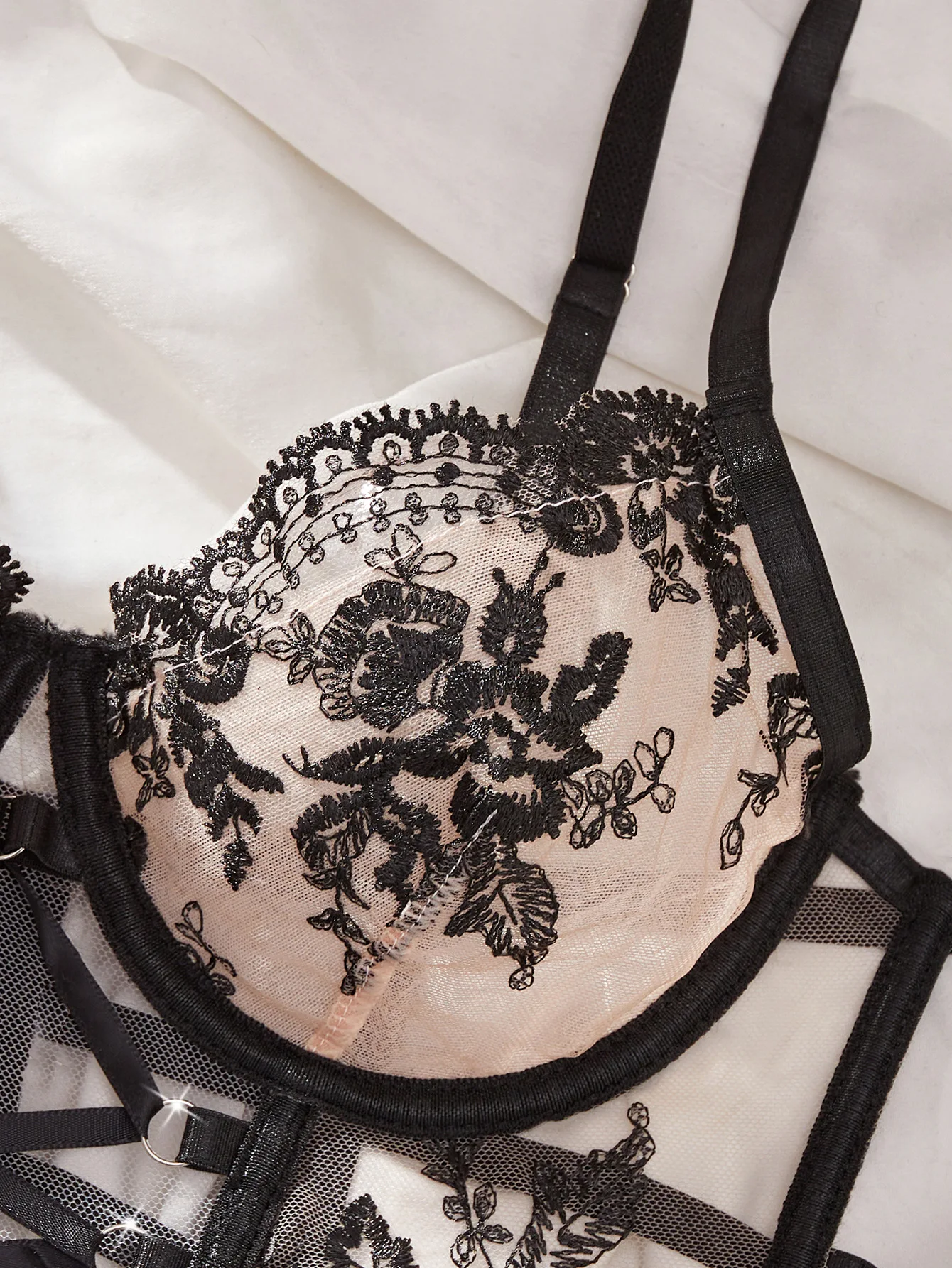 2026 BOON Cross-Border Vintage Floral Embroidered Crisscross Strap Bra Sheer Sexy Lingerie Set for Women