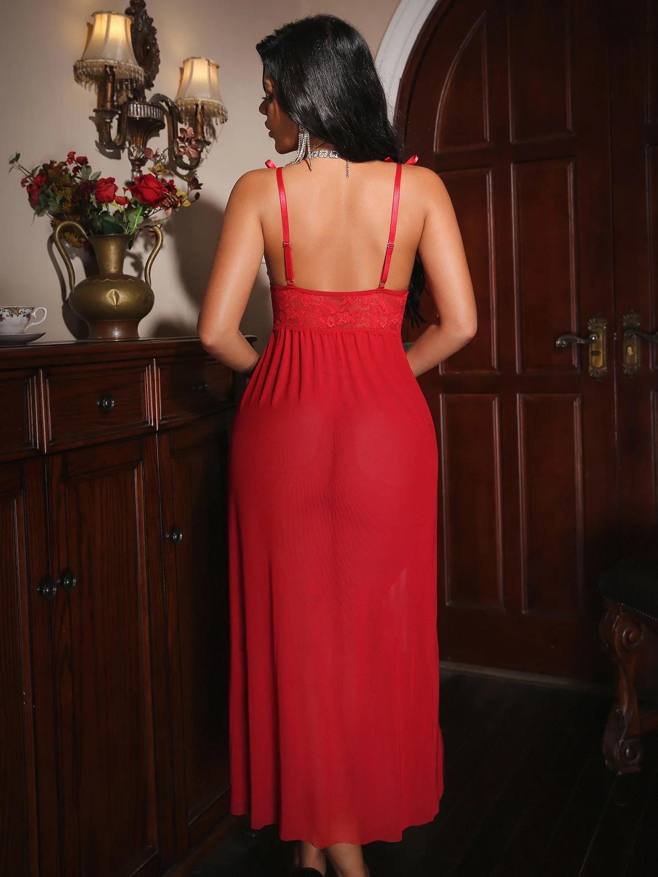 2026 Euro-American Bestseller: Purely Sensual Deep V-Neck Lace Strapless Nightgown with Side Slit and Full-Length Dress Lingerie
