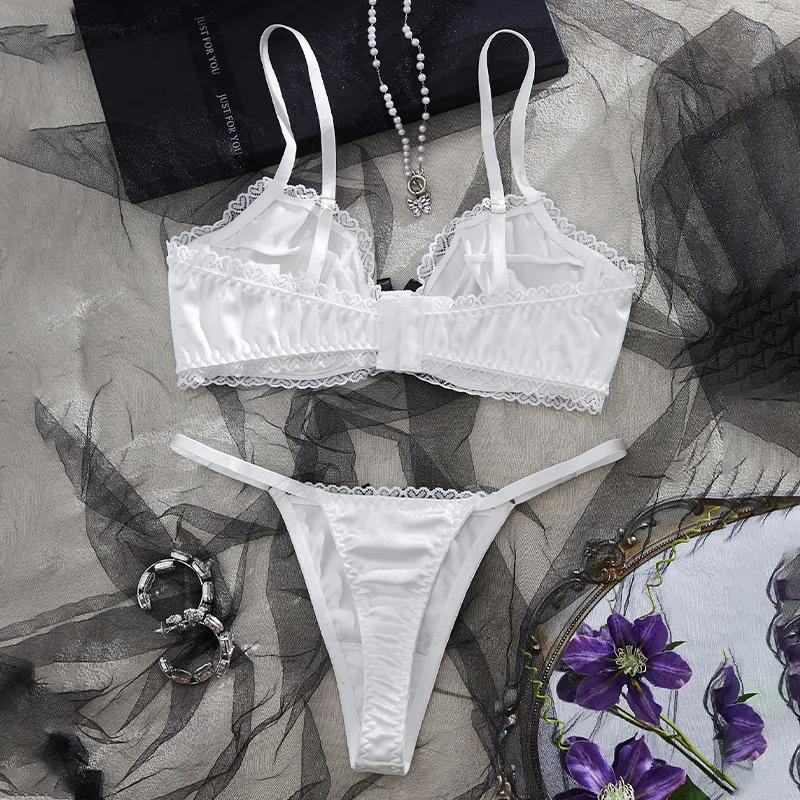 Cross-border Romance French Floral Embroidery Elegant Lace White Lingerie Set Thin Strap Design Plump Bust-Flattering Bra Set