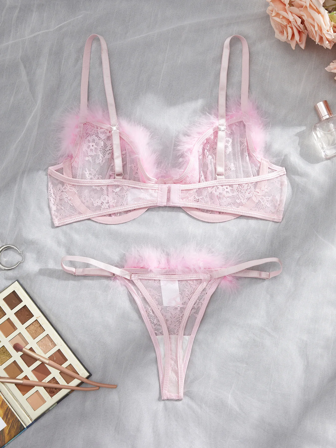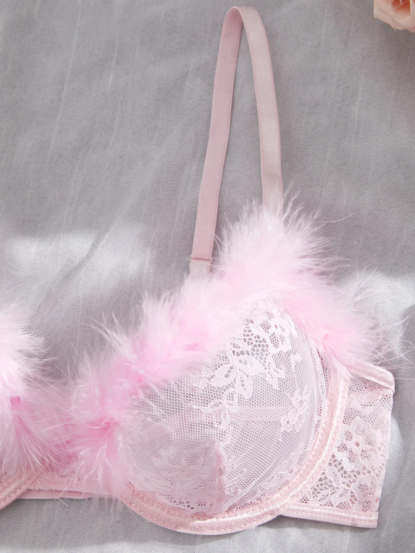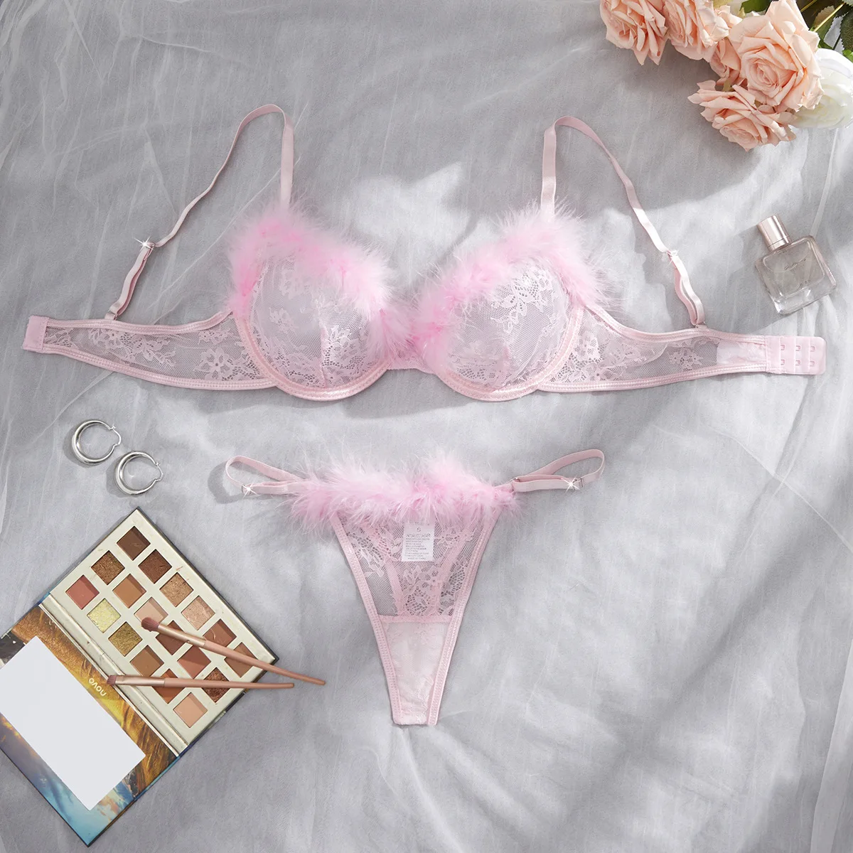 2026 BOON Cross-Border Sweet Sheer High-Quality Lace Plush Sexy Lingerie Set Sweet Pure Desire Underwire Push-Up Bra Set