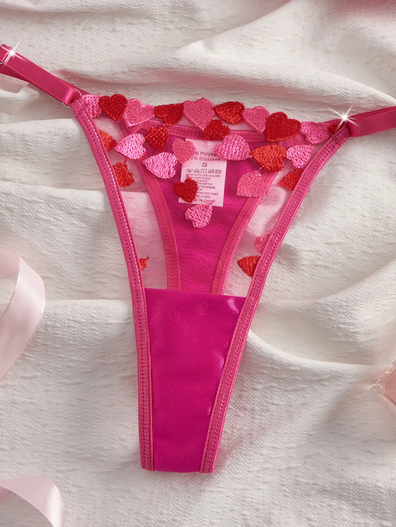 BOON Valentine's Day Sexy Lingerie Set Machine Embroidery Heart Design Spandex/Polyester Blend Breathable Sheer Bust-Lifting