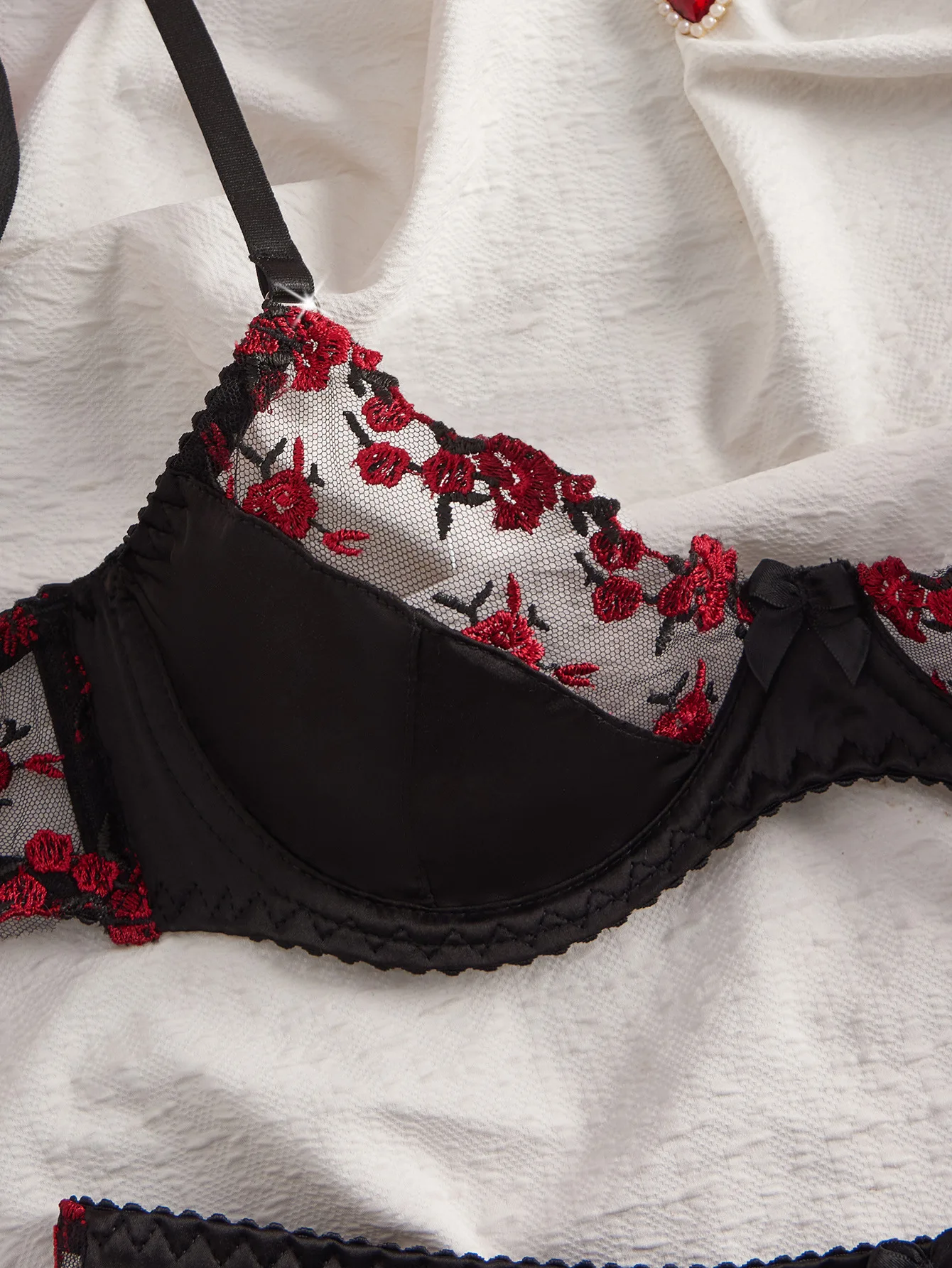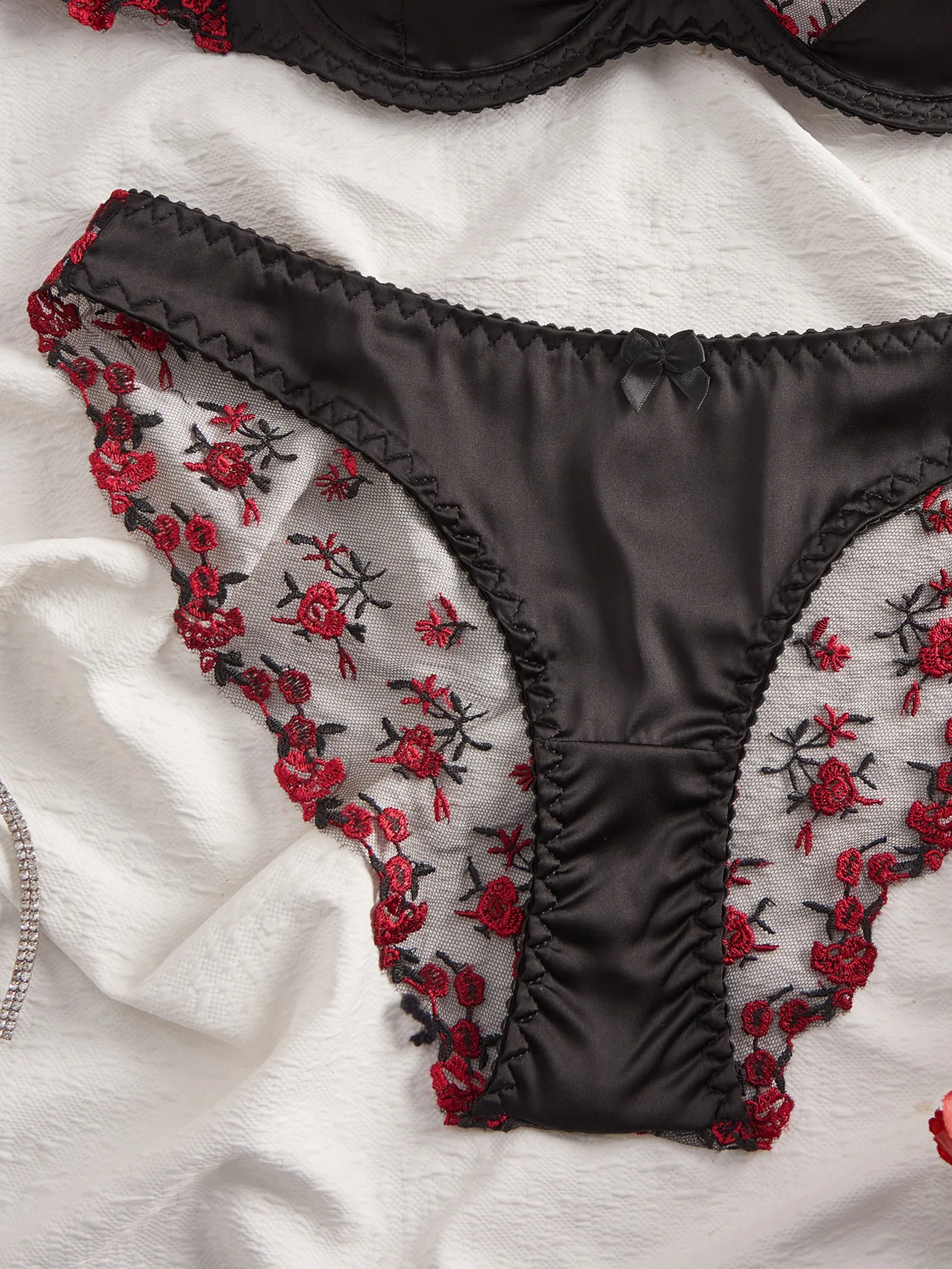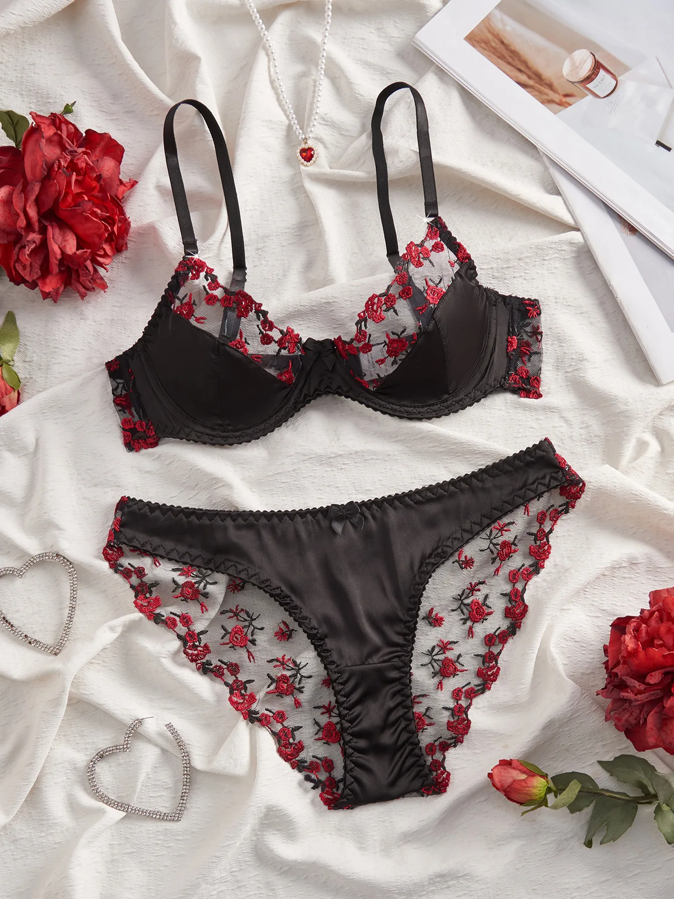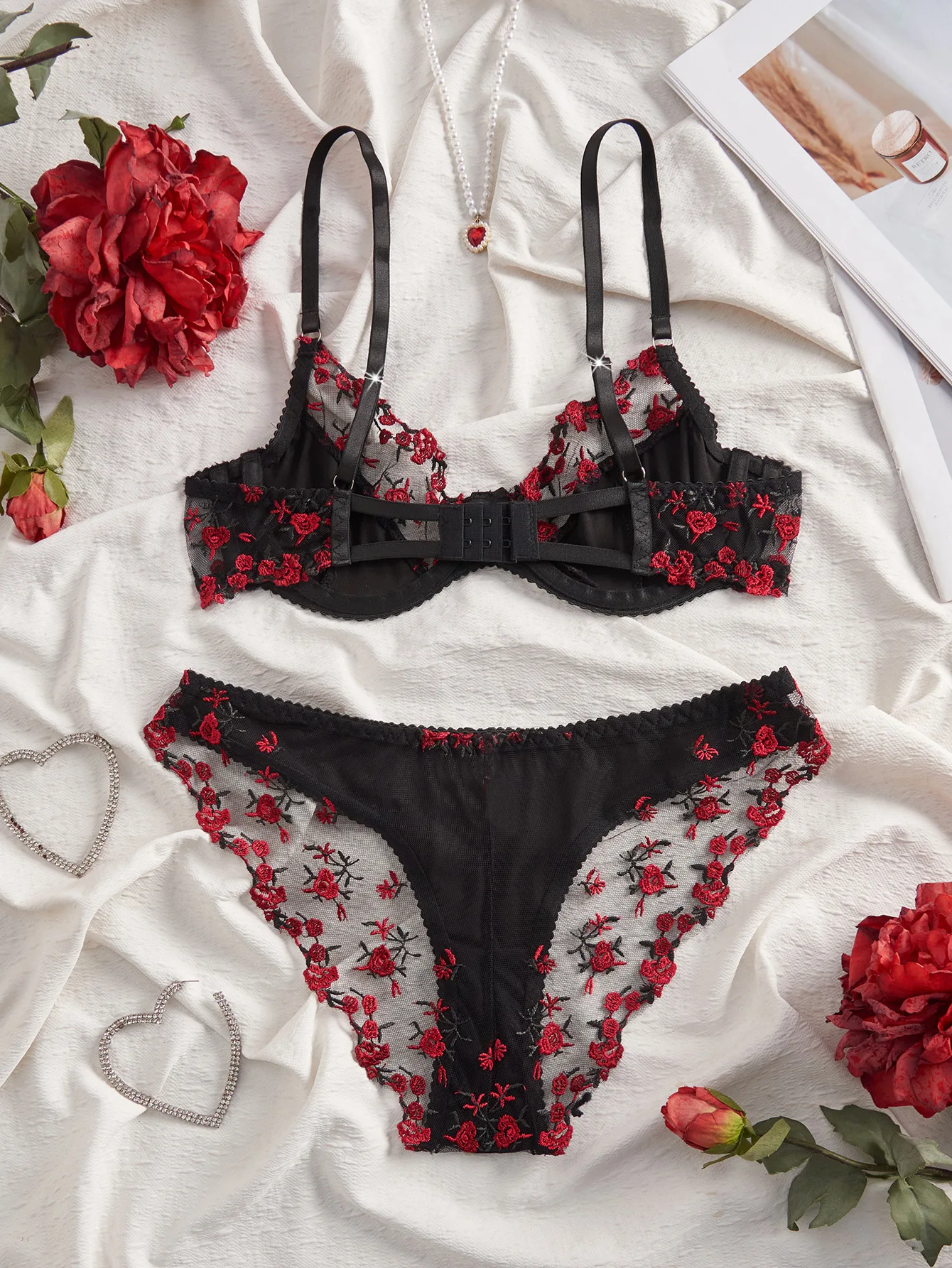 2026 BOON New Arrival: Mesh Rose Embroidered Push-Up Bra with Transparent Seamless Thong - Sexy Lingerie Set