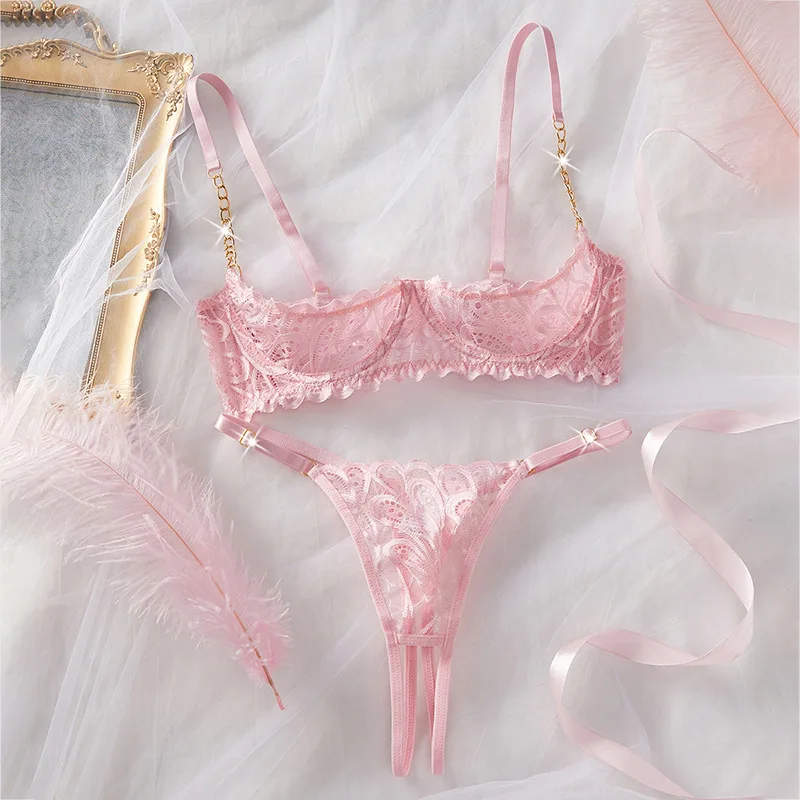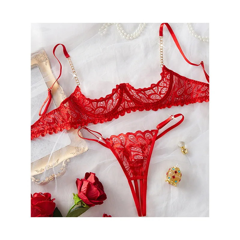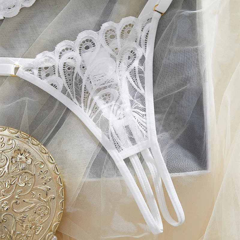 Cross-border Leak-Proof Combo Sexy Lingerie Set Seductive Underwear Crafted Premium Lace Breathable Skin-Friendly Open-Crotch