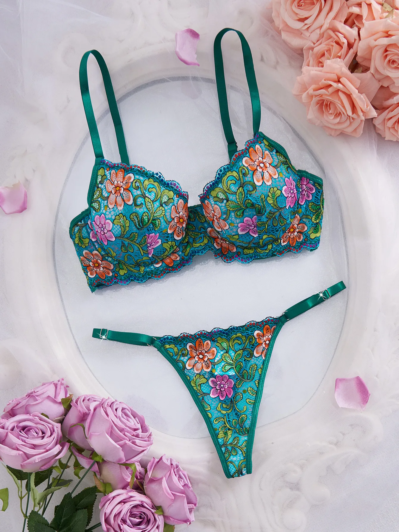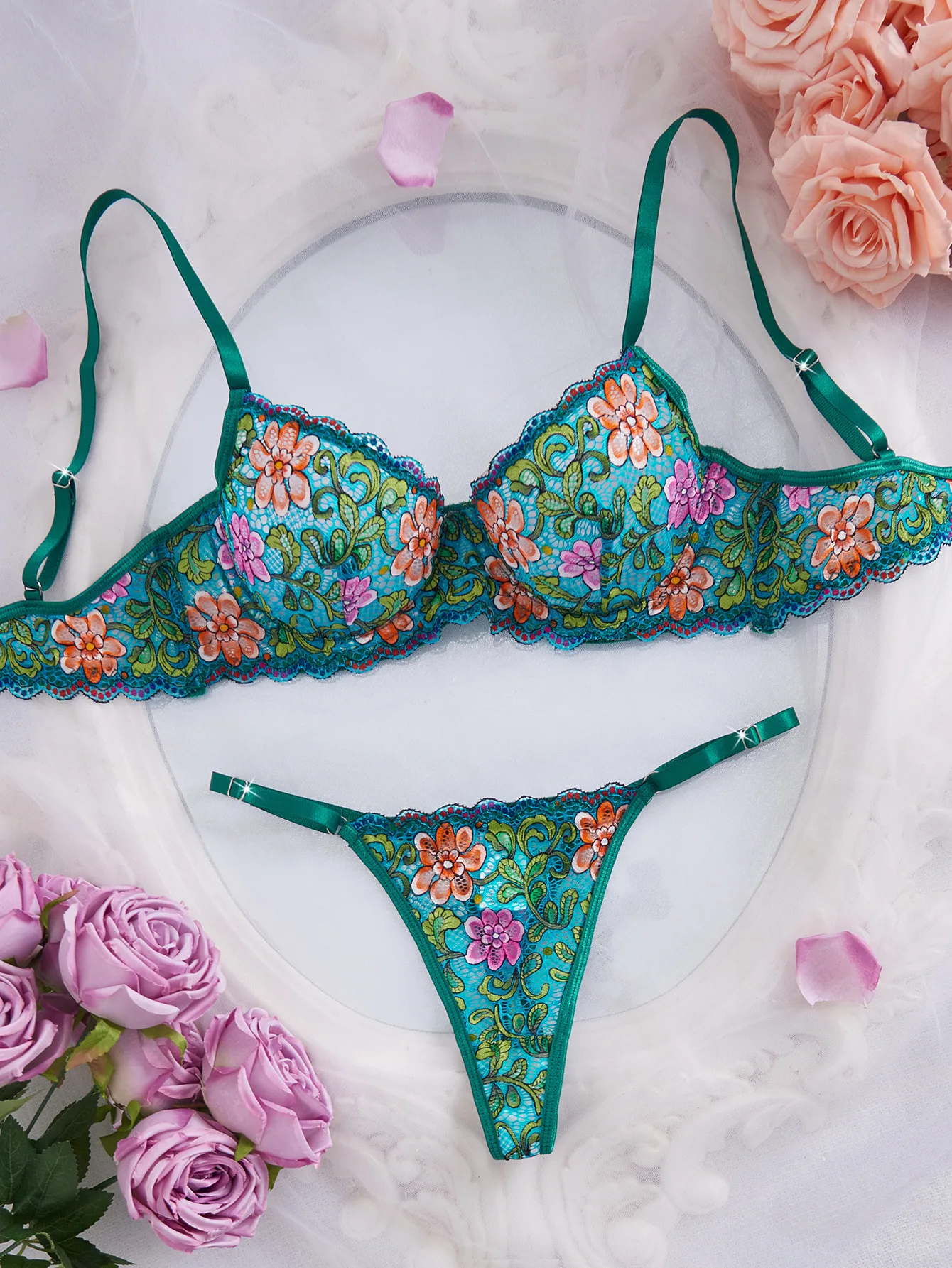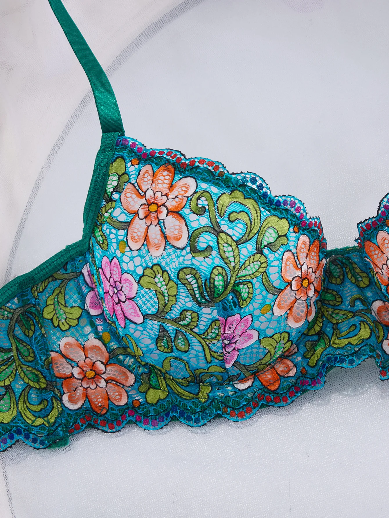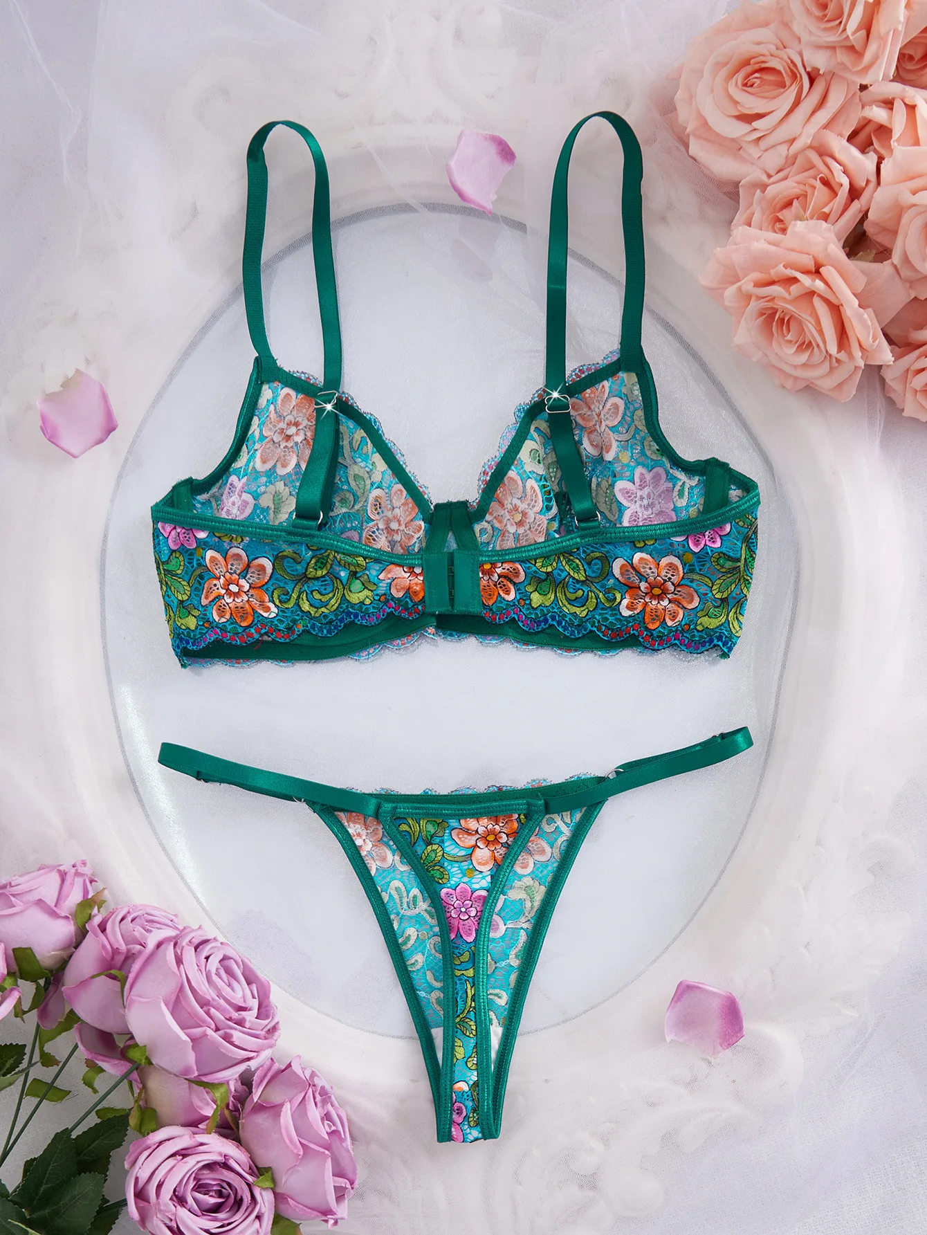 2026 Latest Cross-Border Valentine's Day Sexy Lingerie Set Retro Multi-Color Lace Print Underwire Push-Up Ultra-Thin Bra Set