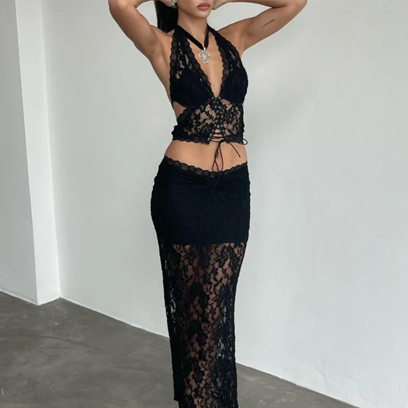 2026 Cross-Border Summer Bestseller: Versatile Lace Backless Halter Neck Lingerie Dress Set for Outerwear