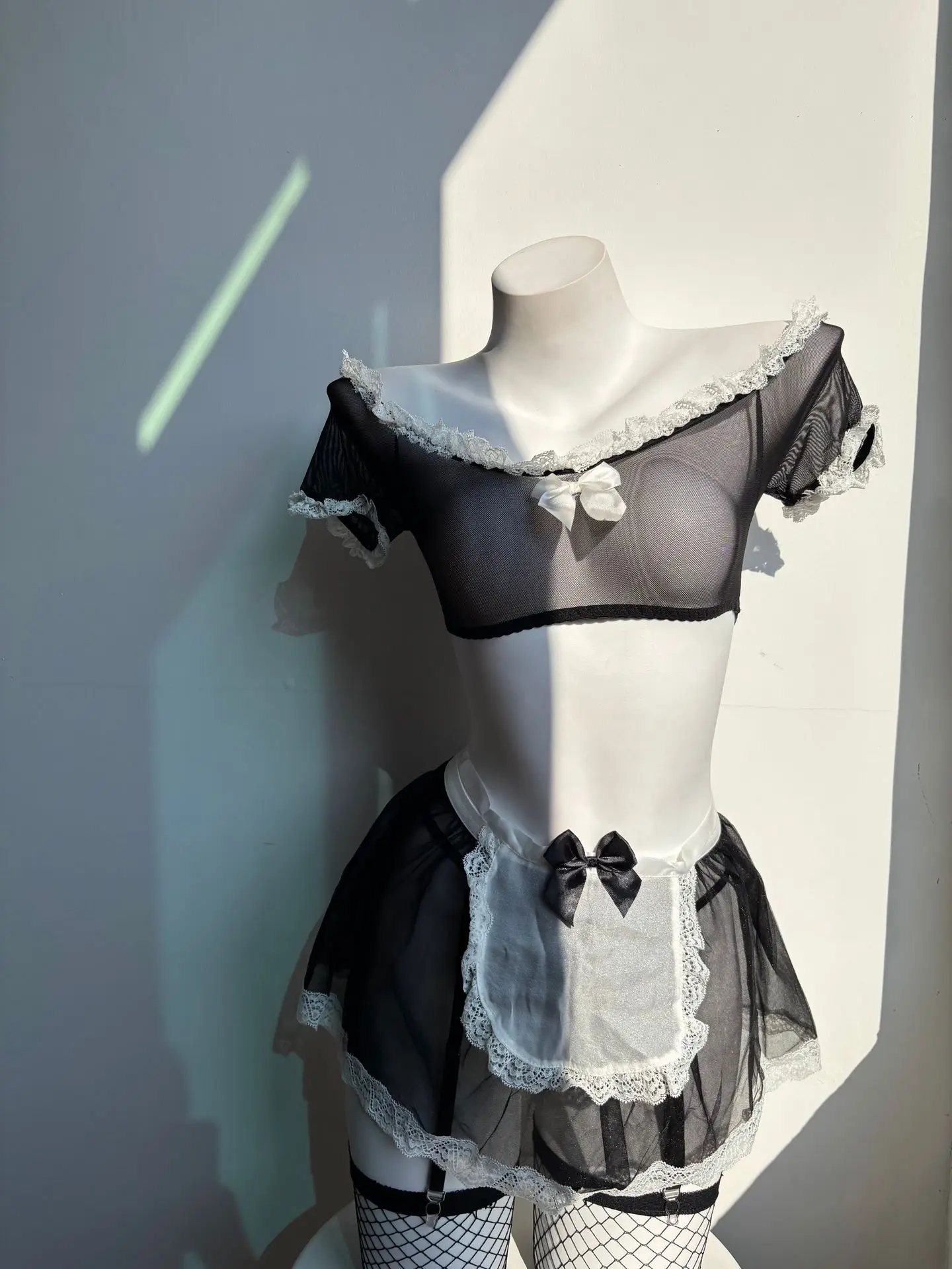 2026 Cross-Border Sexy Sheer Lace Passion Temptation Roleplay Uniform Lingerie Maid Set