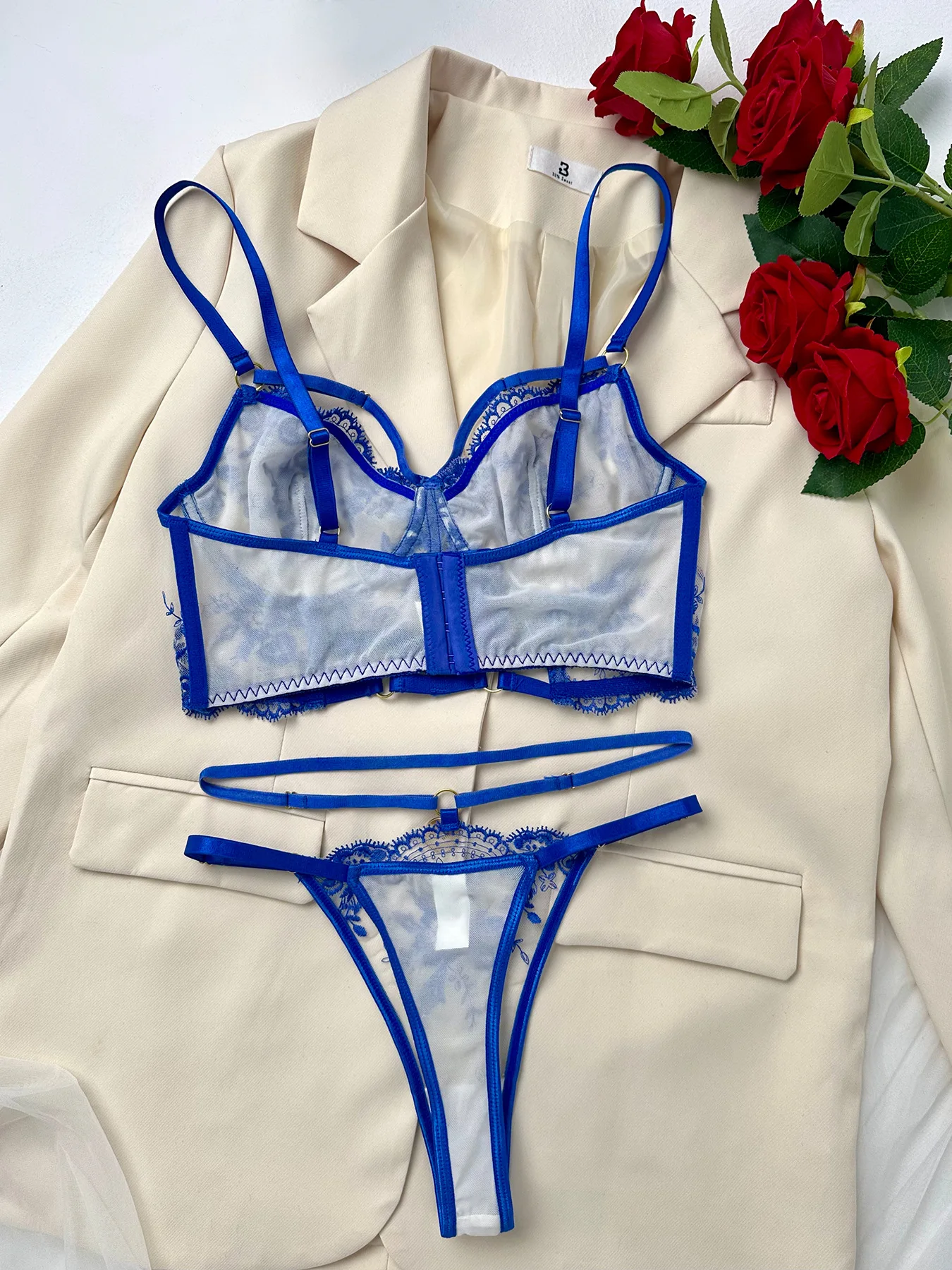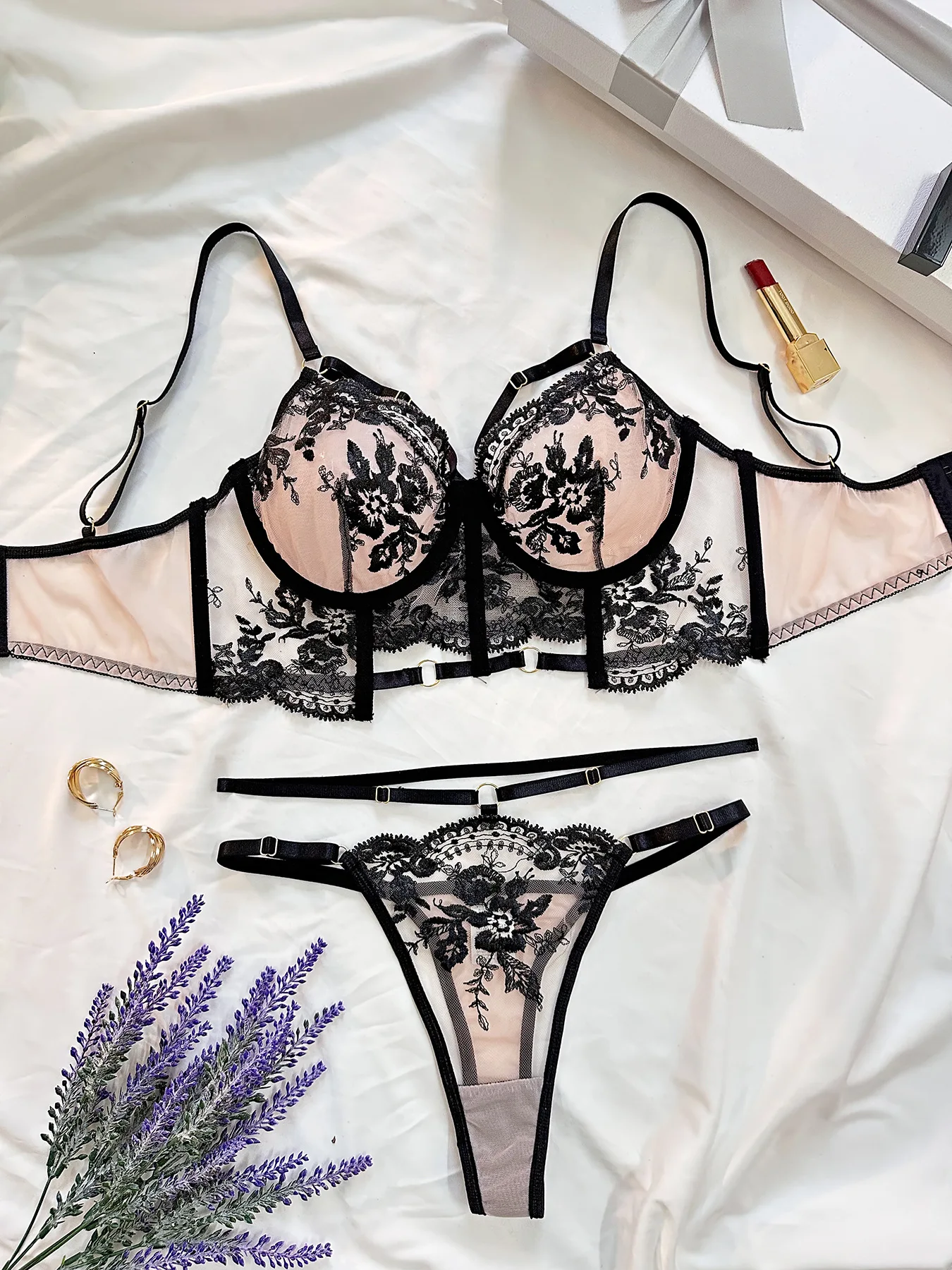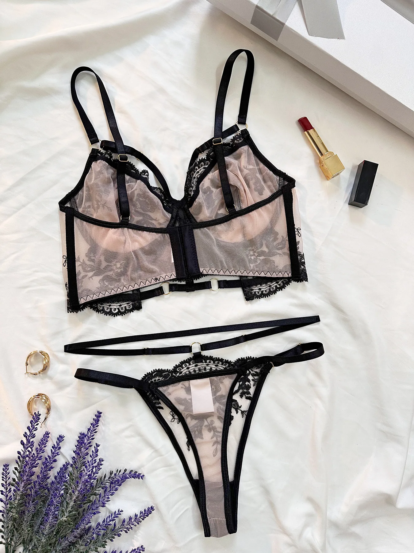2026 Euro-American Style Fashion French Sheer Embroidered Hot Girl Crop Top Underwire Push-Up Sexy Lingerie Set
