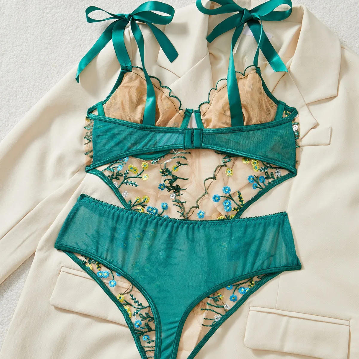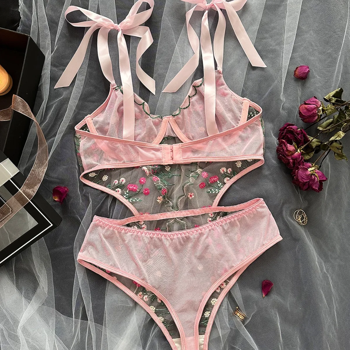 2026 Cross-border European & American New Trend French Lace Floral Embroidery Ultra-Thin Sheer Mesh Bodysuit with Shaped Waist