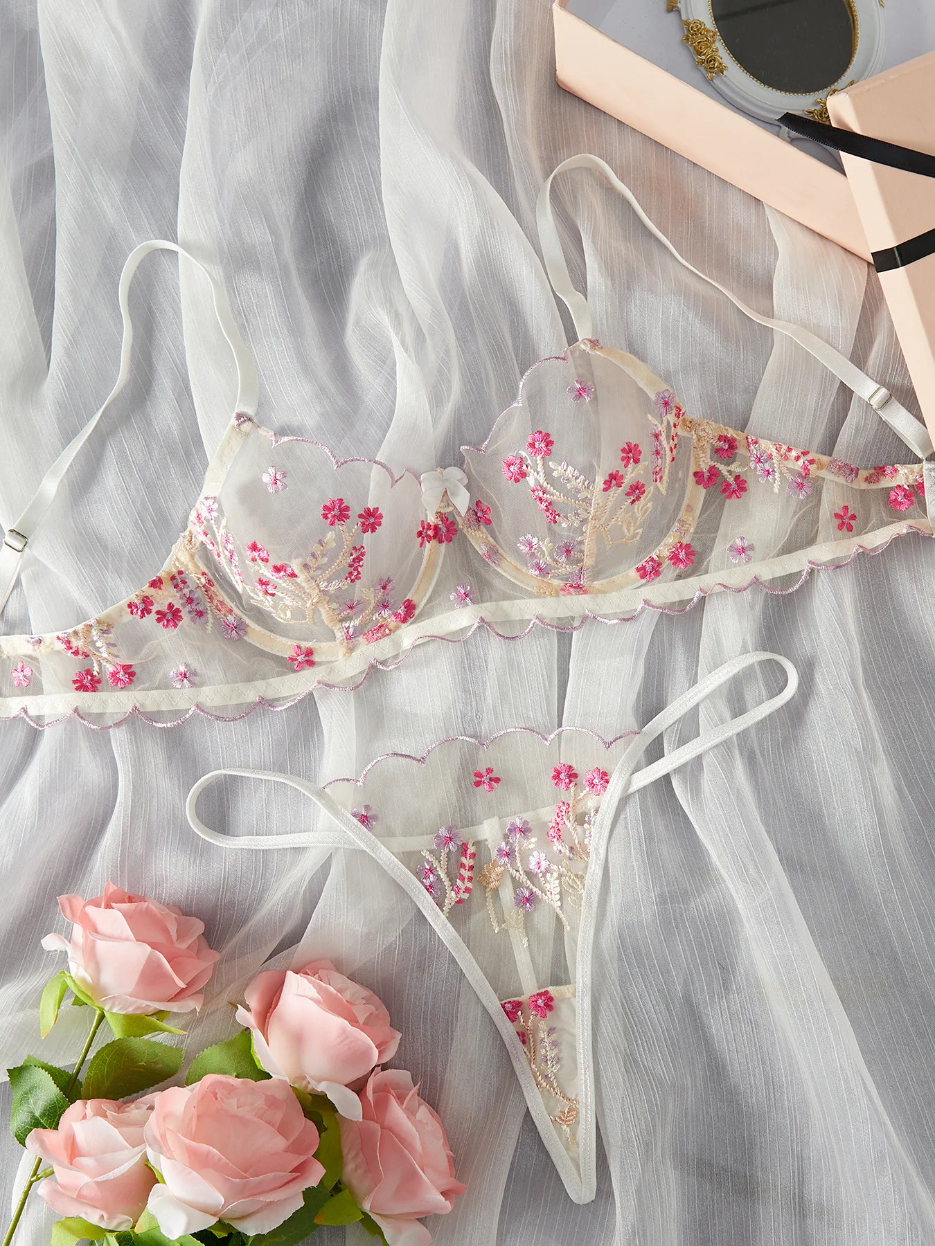 2026 New Arrival Cross-Border Sexy Lingerie Set Sheer Mesh Push-Up Lightweight Women's Bra Set